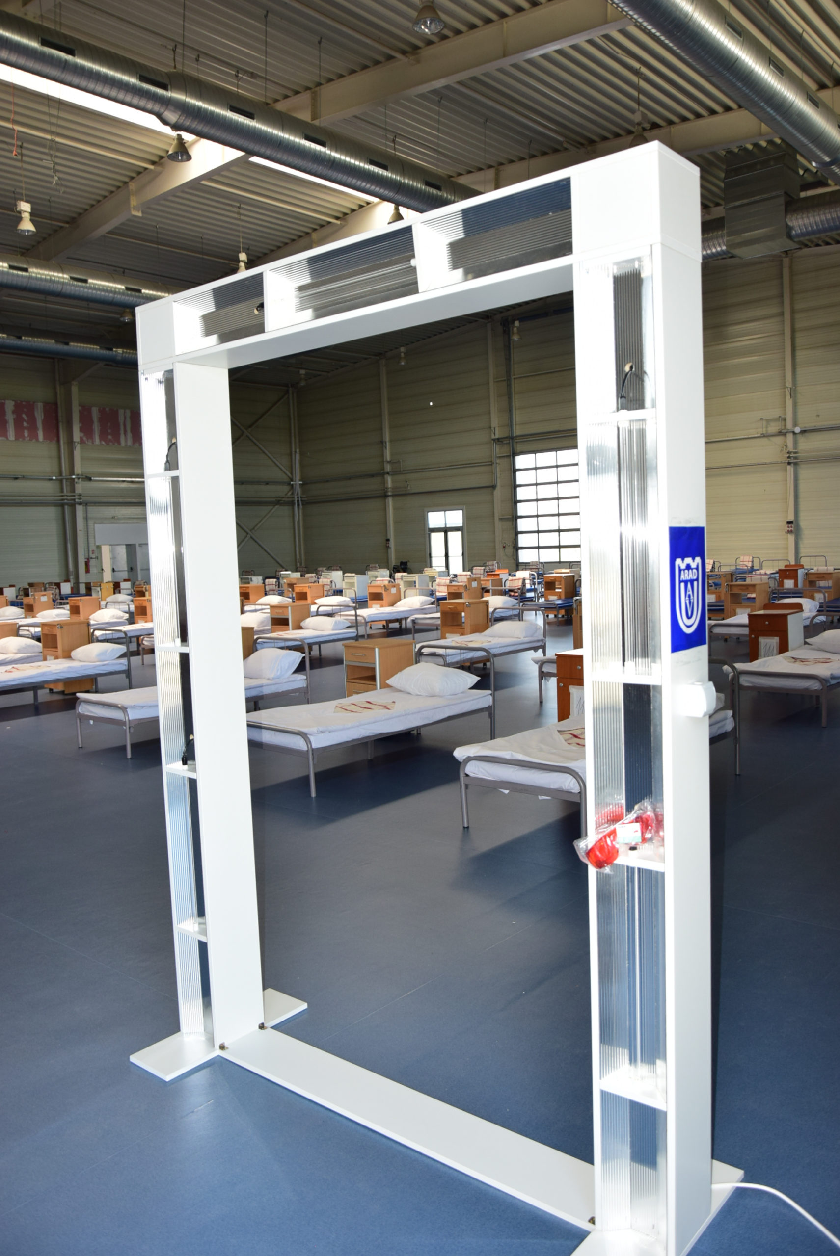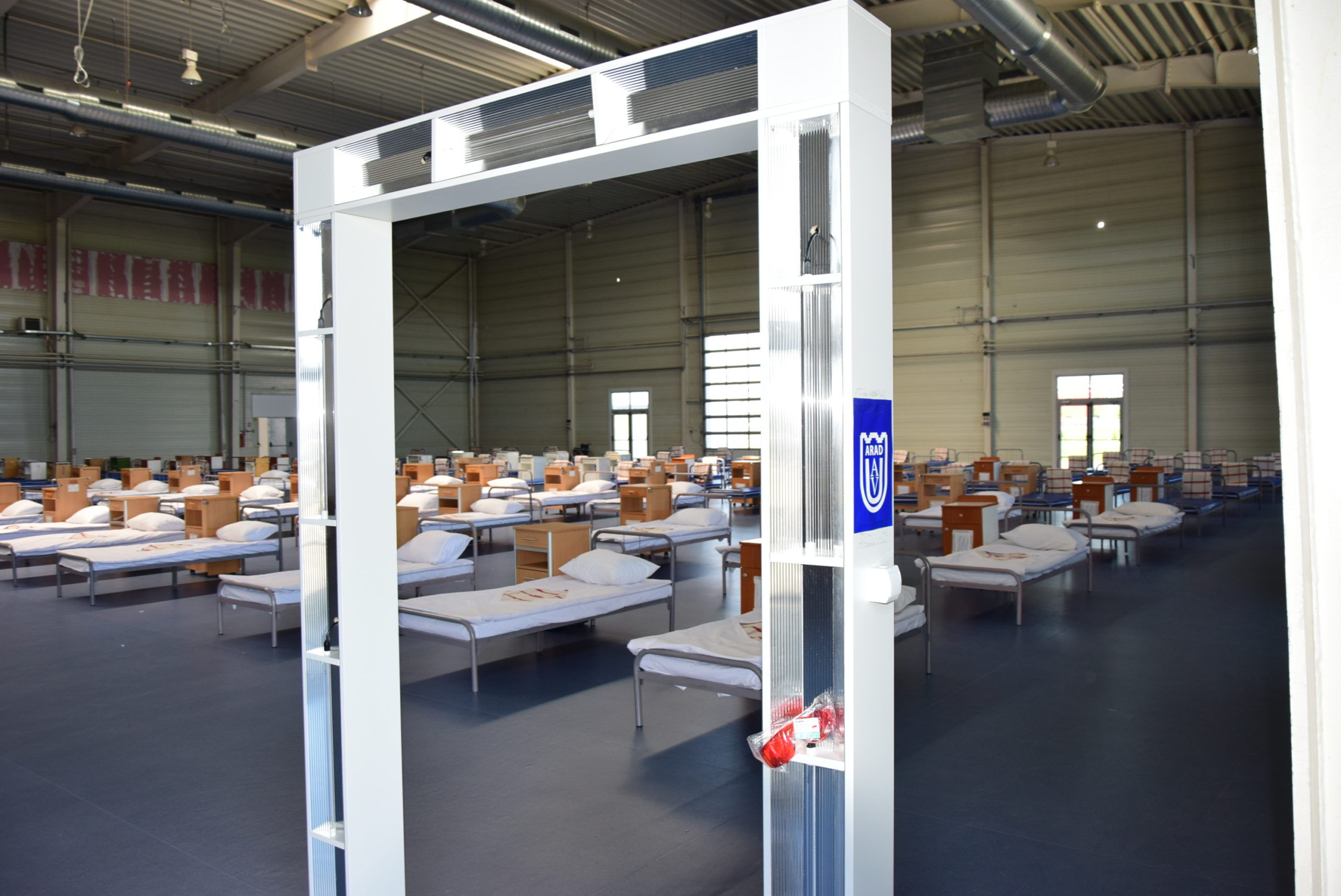 Arad. Poarta de sterilizare, donată de UAV Arad, vine în sprijinul sistemului medical din Arad. „A fost o inițiativă a facultății noastre pe care am realizat-o din fondurile Asociației pentru Management și Cercetare în Științe Socio Umane. Este o investiție pentru arădeni care sperăm să ajute cadrele medicale în epidemia de COVID19. Poarta funcționează în gama ultraviolete și respectă toate standardele medicale europene”, a declarat decanul Facultății de Inginerie, prof.univ.dr. Dan Glăvan.