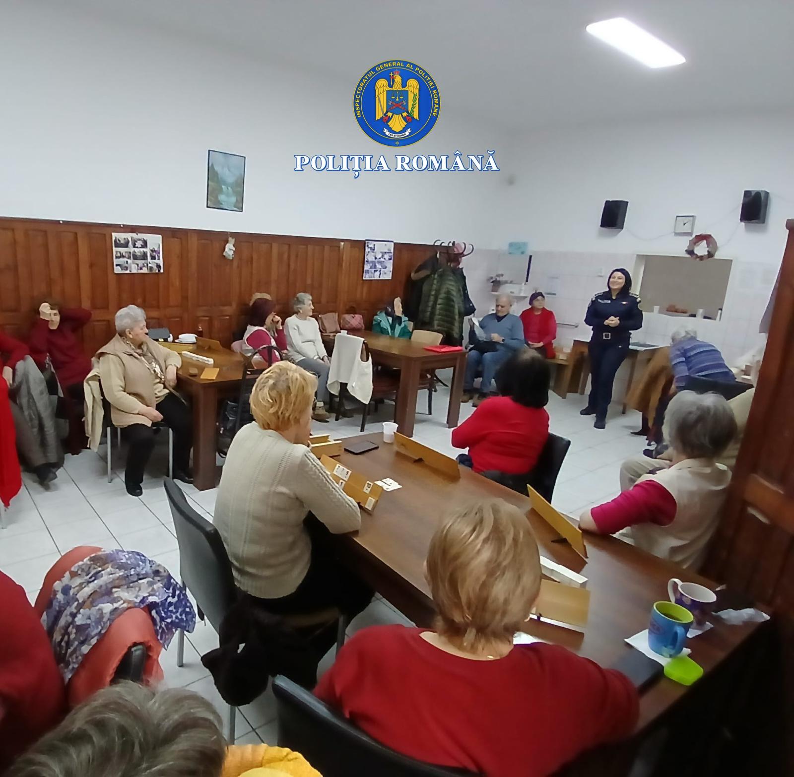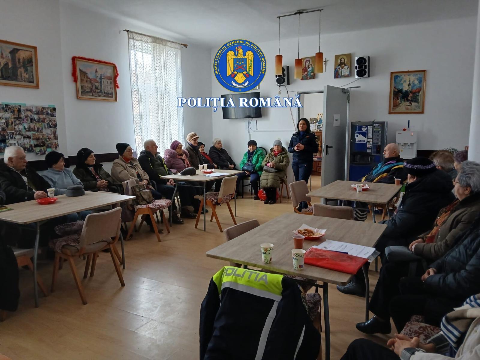 Compartimentul de Analiză și Prevenire a Criminalității din cadrul I.P.J. Arad a fost in mijlocul seniorilor. Polițiștii au desfășurat activități de prevenire în centrele de zi pentru persoane vârstnice, din subordinea Direcției de Asistență Socială Arad.
