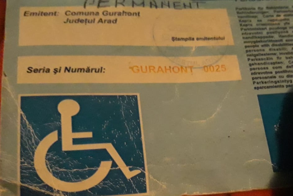 „Sunt învățătoare în Arad. Astăzi (n.n. miercuri) după terminarea orelor, am alergat într-un suflet de la Arad la Gurahonț să o duc pe mama mea bolnavă grav, cu handicap gradul I cu întreținător, la medic la control la Arad. Ajung la Arad cu 15 minute înainte de programare în zona Piața Caius Iacob. După ce încerc să parchez mașina pe loc de handicap cu card de parcare handicap – nu găsesc loc de parcare nicăieri, nici pe handicap, nici pe loc cu plată. Orele 16:00. Parchez mașina într-un loc, cică hotărăște poliția nepermis, și primesc amendă pe geam când mă întorc de la medic cu bolnava. (Nu am parcat pe locul de parcare al altui autovehicul, menționez asta, cardul de parcare handicap era pe bord). Mentionez că mașina am parcat-o la 500 de metri de clinică, în condițiile în care bolnava nu este deplasabilă”.