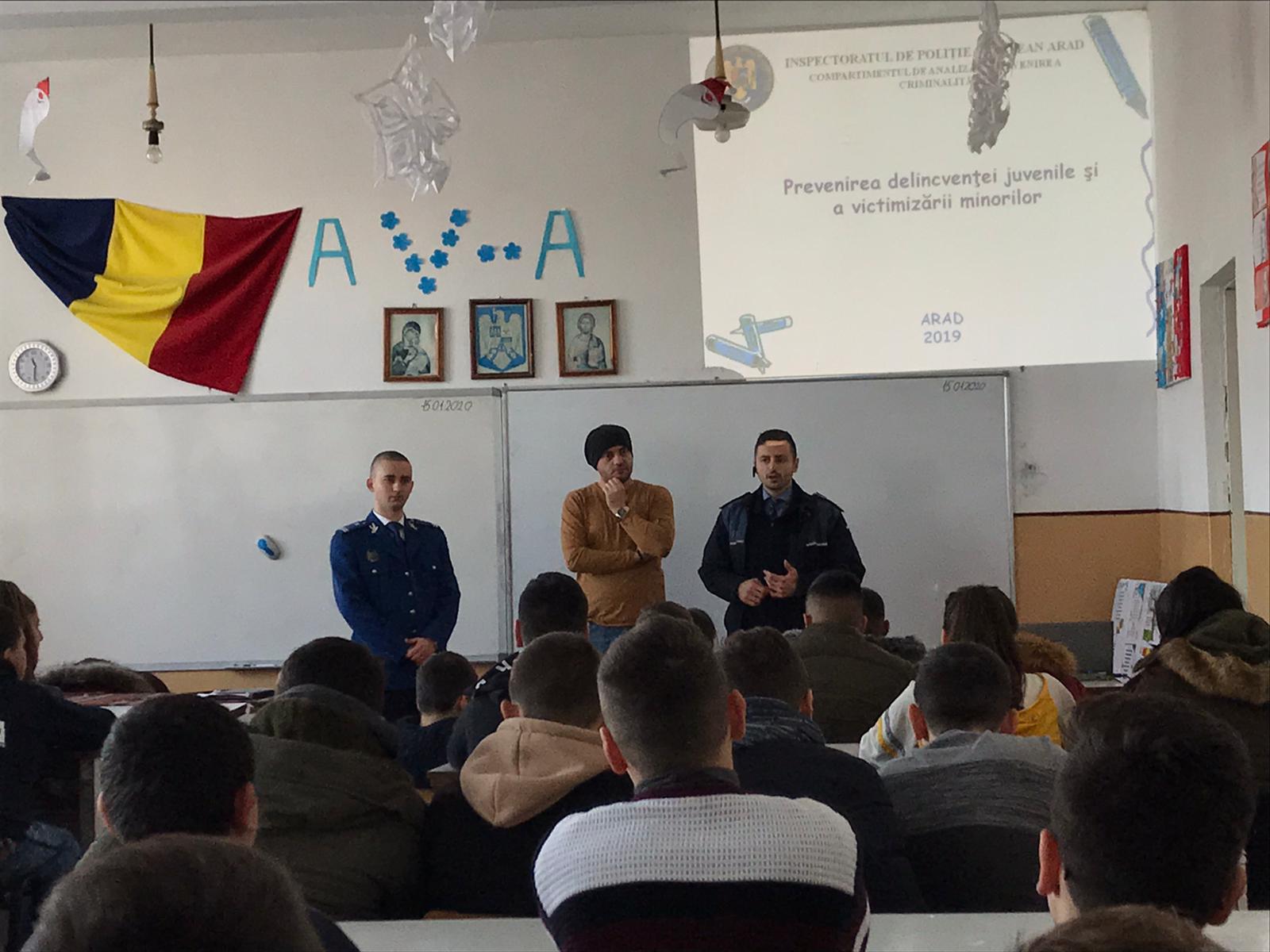 După prezentarea aspectelor legislative și a materialelor video pe această temă, polițiștii le-au explicat elevilor importanța implicării lor în procesul instructiv/educativ realizat de către profesori. Tinerii trebuie să conștientizeze că disciplinele studiate în cadrul școlar au rolul de a le descoperi și dezvolta laturi ale personalității, inteligența în general.