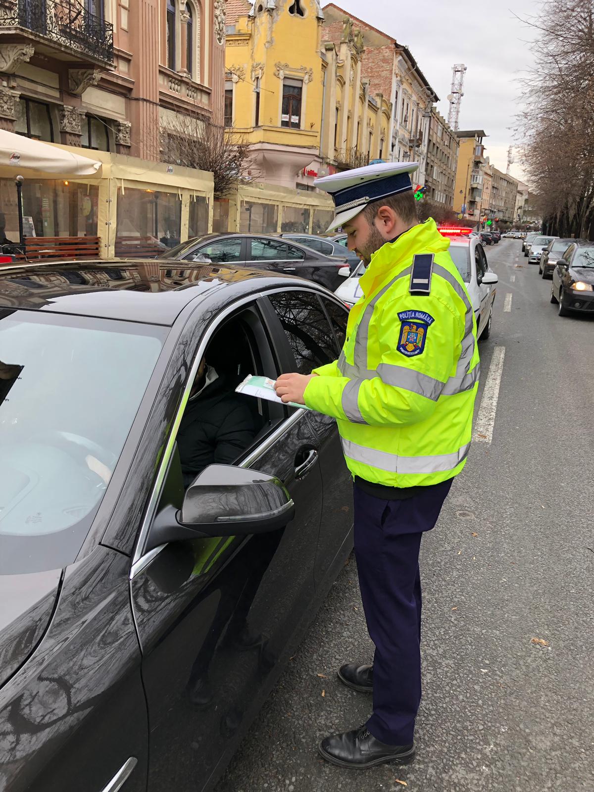 ARAD. Potrivit IPJ Arad „acțiunea, care a avut ca scop impunerea unui climat de ordine și siguranță publică, a urmărit depistarea și sancționarea conducătorilor auto care nu respectă regimul legal de viteză, nu acordă prioritate pietonilor, nu respectă semnificația culorii <<roșu>> a semaforului electric sau încalcă alte prevederi ale legislației rutiere”. În urma activității, polițiștii au constatat 101 contravenții și au dat amenzi în valoare de 39.275 de lei. 16 dintre sancțiunile contravenționale au fost aplicate pentru nerespectarea vitezei legale de deplasare, în timp ce 29 de conducători auto au fost amendați pentru că nu au purtat centura de siguranță. Alți 6 șoferi au fost depistați și sancționați pentru utilizarea telefonului mobil. Polițiștii rutieri au mai aplicat 5 amenzi pentru neacordarea priorității pietonilor, 8 pentru oprire neregulamentară și 35 pentru alte abateri. De asemenea, polițiștii au reținut 5 permise de conducere – 1 pentru depășire neregulamentară, 2 pentru nerespectarea semnificației culorii „roșu” a semaforului electric și 2 pentru neacordare de prioritate pietonilor – și au retras 2 certificate de înmatriculare pentru defecțiuni tehnice. Oamenii legii au mai constatat 2 contravenții la Legea 61/1991, privind vânzarea de locuințe construite din fondurile statului către populație și 2 abateri Legea 12/1990, privind protejarea populației împotriva unor activități comerciale ilicite.