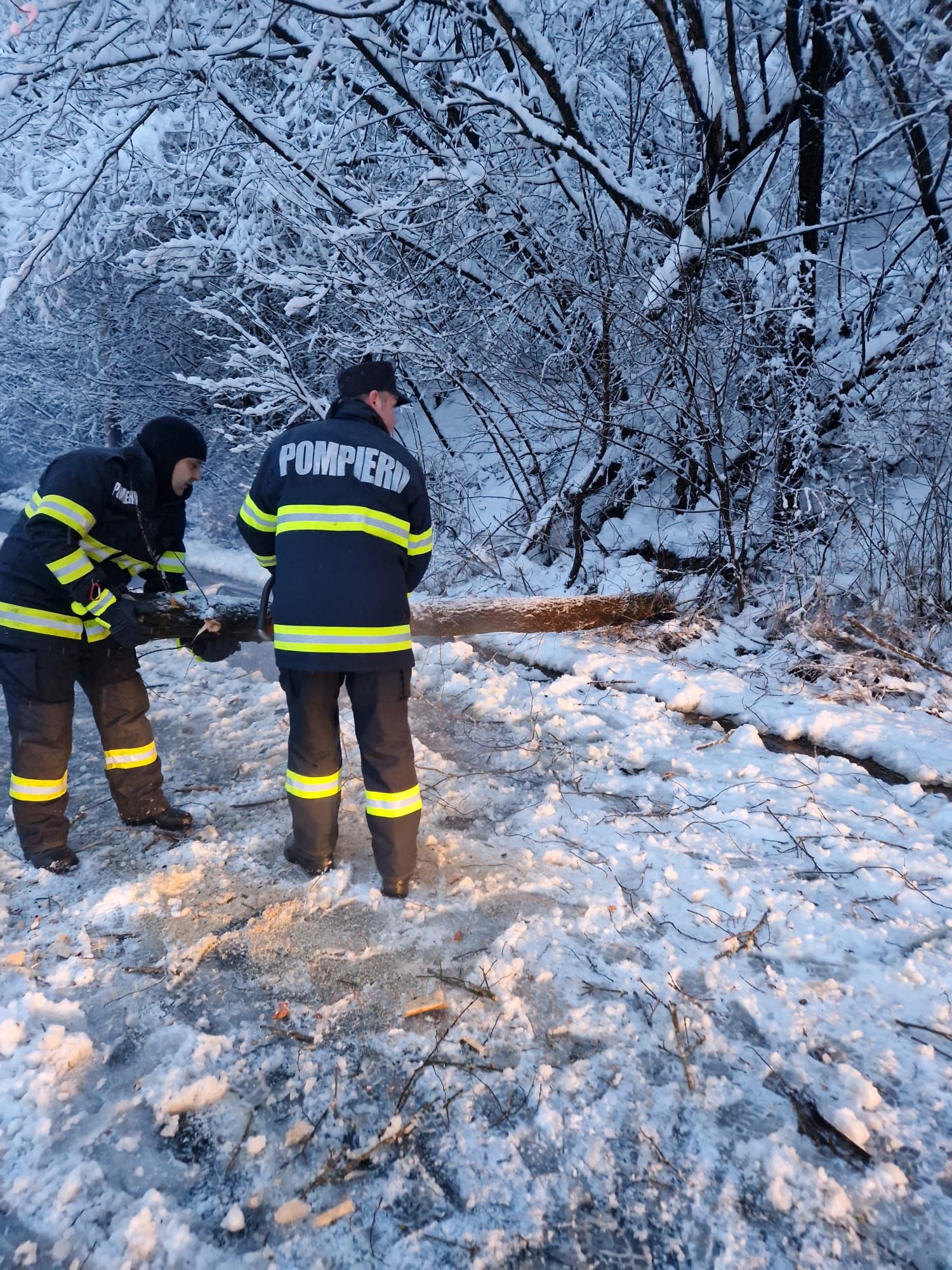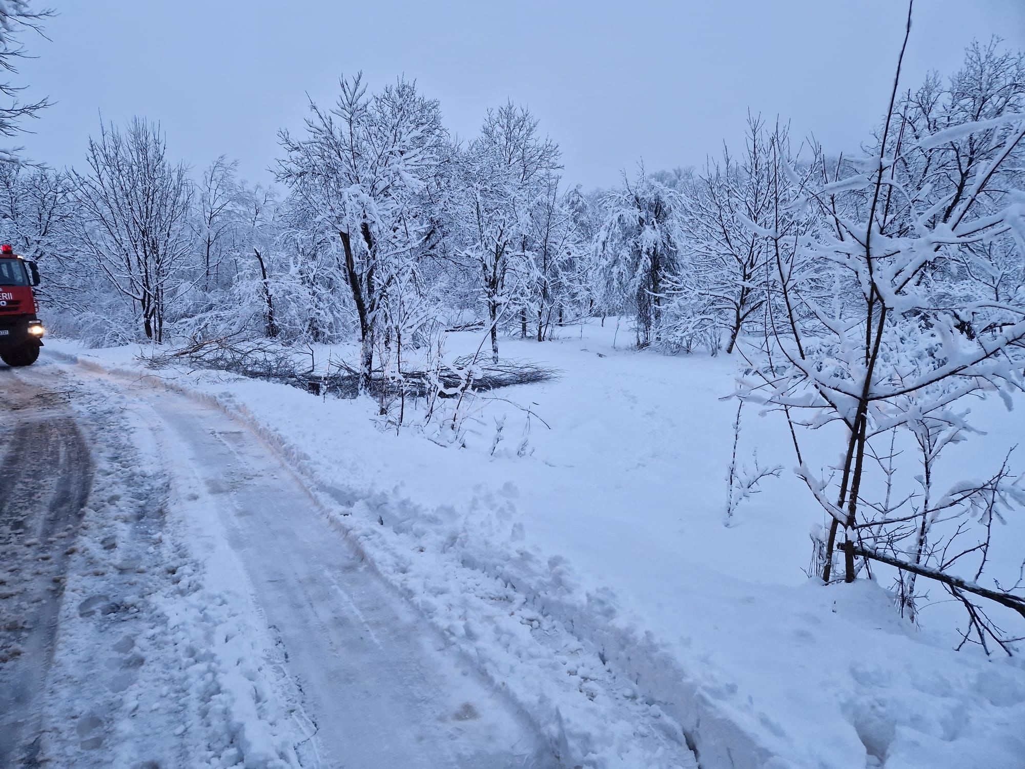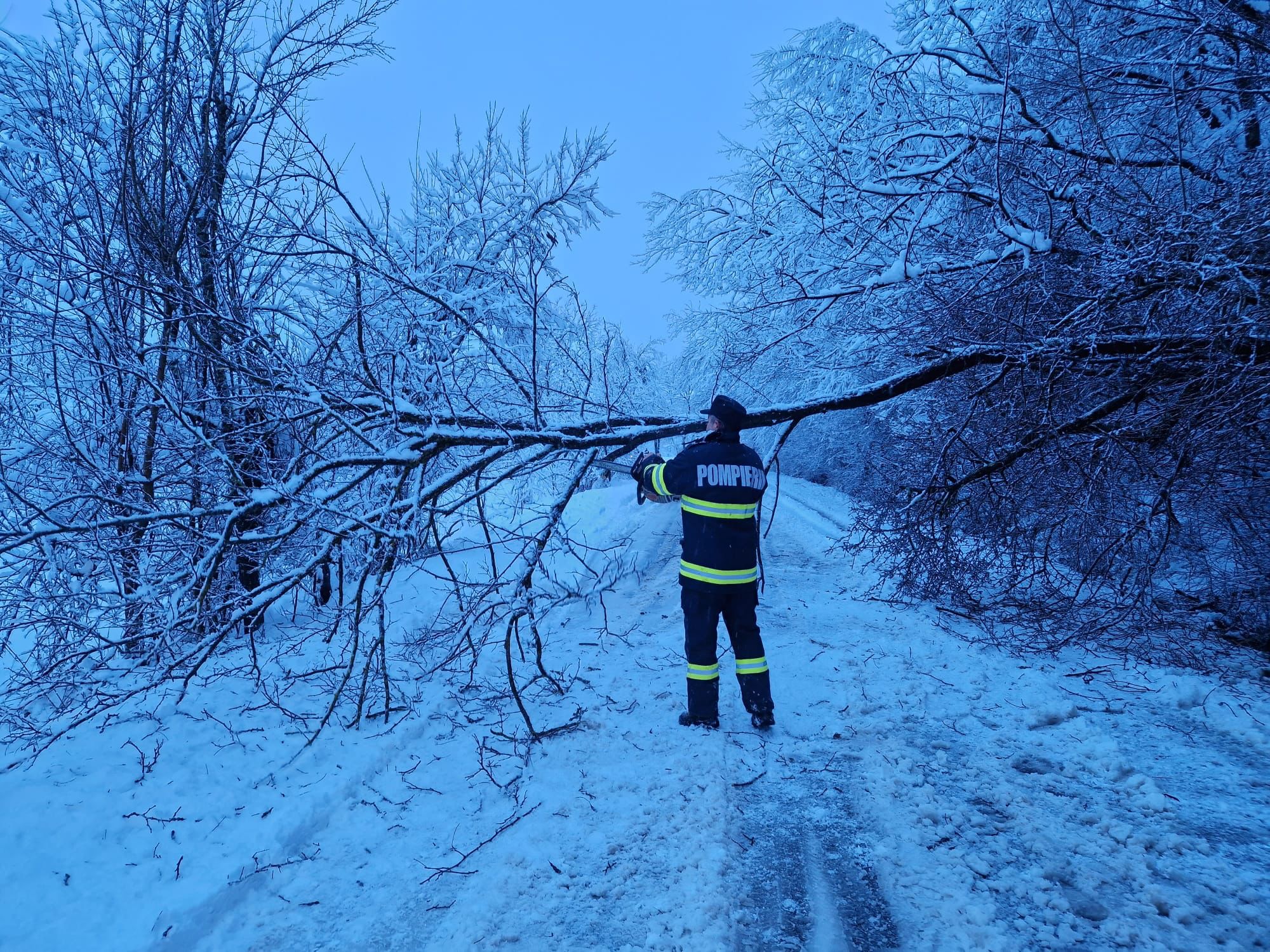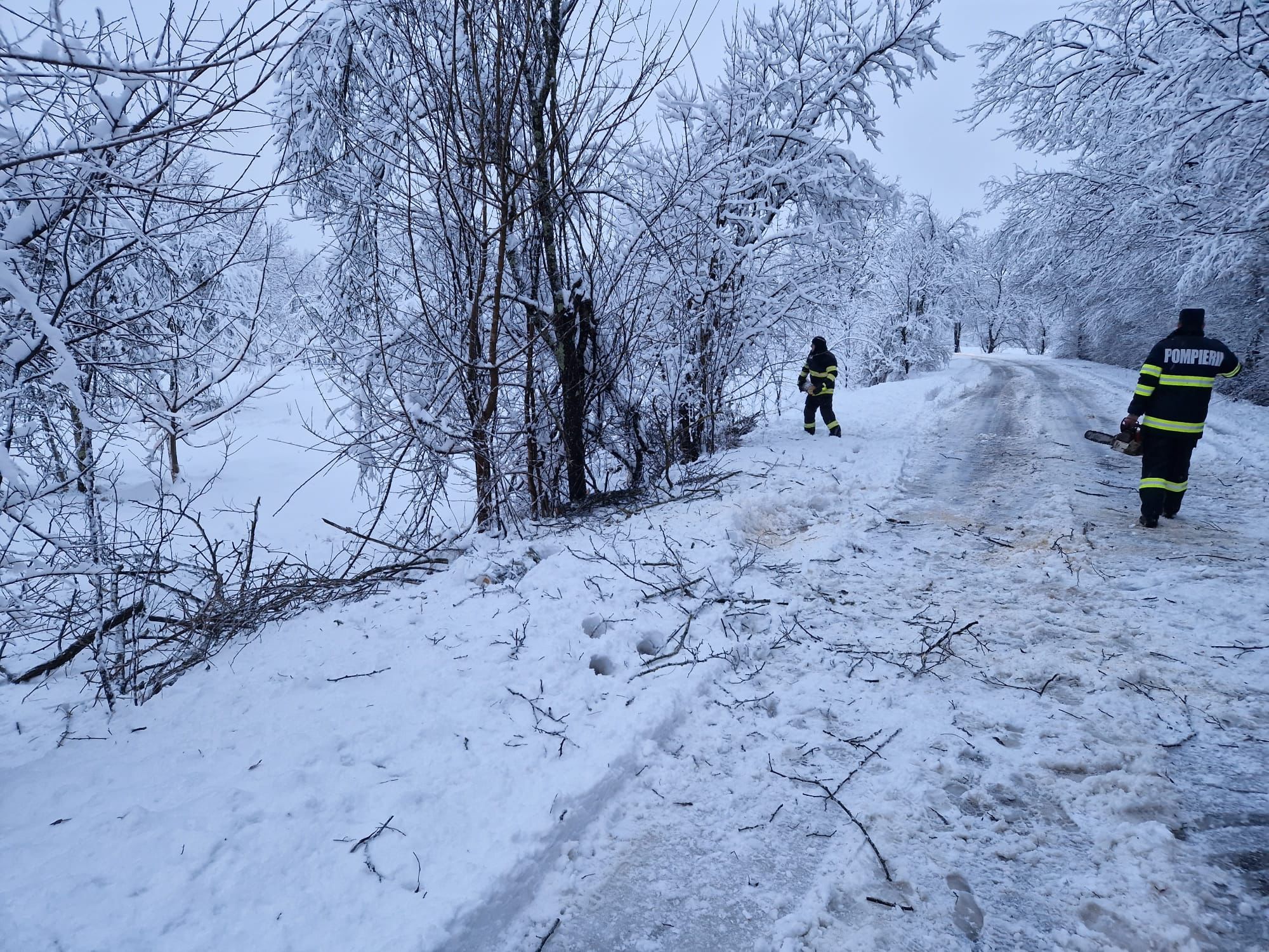 ARAD „În urma avertizării meteorologice COD Galben de ninsori însemnate cantitativ și strat consistent de zăpadă, pompierii militari arădeni au intervenit în această dimineață pe: DN 79 – A, între localitățile Gurahonț și Gura Văii, pe DJ 708, intre localitățile Gurahonț și Secaș și pe DJ 707, între localitățile Julita și Mădrigești pentru degajarea unor copaci cazuri pe carosabil”, a anunțat ISU Arad.