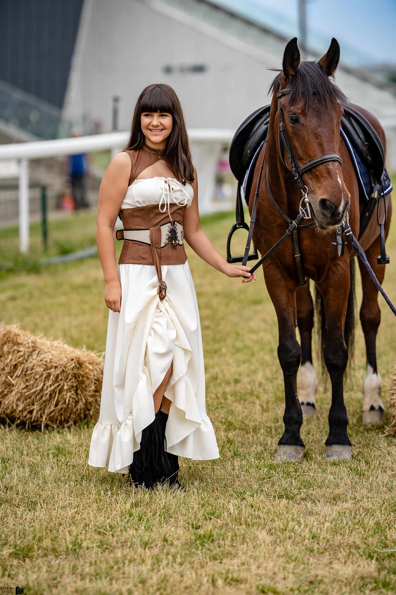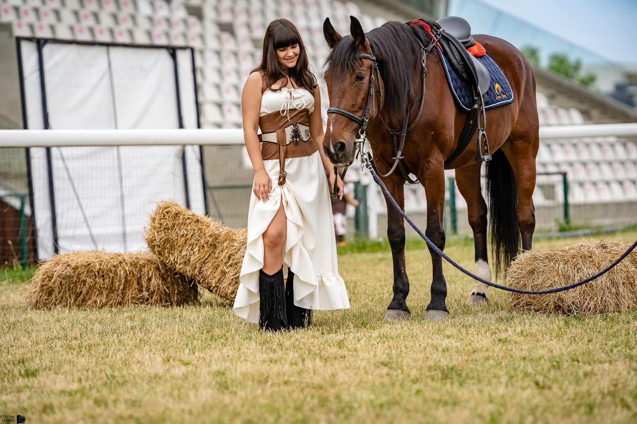 PLOIEŞTI. După ce a defilat pe podiumurile de modă la numeroase evenimente specifice, mini-modelul Agenţiei Lawinne Models, Maria Chelmăgan, a bifat o premieră: a participat atât ca model, cât şi ca designer la un festival de modă. Este vorba de evenimentul „Puss in boots” care a avut loc zilele trecute la Complexul Hipodrom din Ploieşti. Maria Chelmăgan a defilat pentru brandurile Big Cat și Iconic, dar a avut şi o şedinta foto alături de cai.