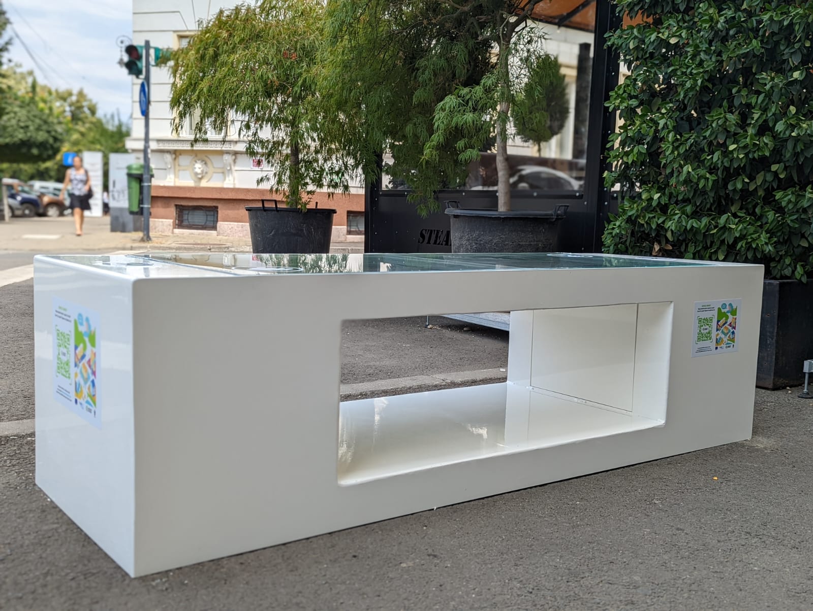 „În cadrul proiectului, am analizat, împreună cu comunitatea, dar și cu partenerii europeni posibilitățile de revitalizare a zonei centrale, în scopul utilizării mai eficiente și mai echitabile a spațiului public. Pentru a marca dorința municipalității de a promova atât mobilitatea durabilă, cât și soluțiile digitale, am achiziționat în cadrul proiectului și o bancă inteligentă, pe care am amplasat-o pe strada 1 Decembrie 1918, una din zonele propuse pentru reconversie pietonală. Mă bucur că am reușit să achiziționăm o astfel de bancă, mai ales că această investiție s-a realizat din fonduri europene, nerambursabile. Vom vedea cum se comportă în timp. În ultimii ani am primit mai multe propuneri pentru a achiziționa un astfel de element de mobilier urban. Acum avem ocazia să testăm această soluție, iar dacă răspunde nevoilor noastre și ale cetățenilor, putem decide să montăm și altele în diferite zone din oraș, cum ar fi platoul din fața Primăriei” – a declarat primarul Călin Bibarț.