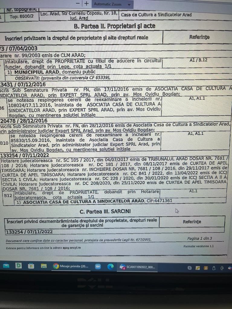 ARAD. După zeci de ani petrecuţi prin tribunale cu scopul de a stabili cine e proprietarul clădirii, după o sentinţă definitivă care a decis că aceasta aparţine Sindicatelor, după un control fiscal care a evidenţiat datorii de 9.137.676,07 lei la bugetul local, Primăria Arad a trecut la pasul următor: a pus sechestru pe Casa de Cultură a Sindicatelor!