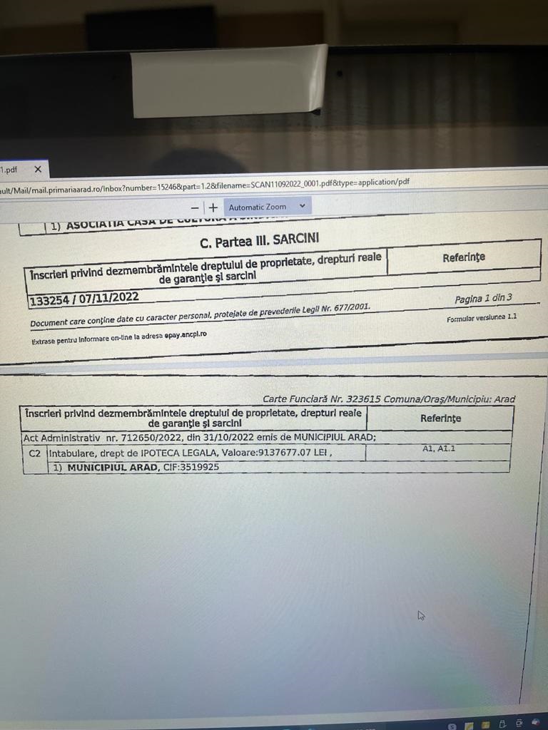„Ne prevalăm de dreptul care se numeşte <dare în plată> astfel încât noi să putem lua clădirea în baza datoriei, în patrimoniul Aradului” – spunea, în septembrie, primarul Călin Bibarţ.