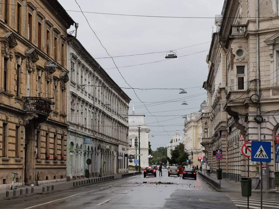 Potrivit ISU, pompierii au fost solicitaţi să intervină pentru degajarea unor elemente de construcție de pe clădiri pe străzile Mărășești și Lucian Blaga.