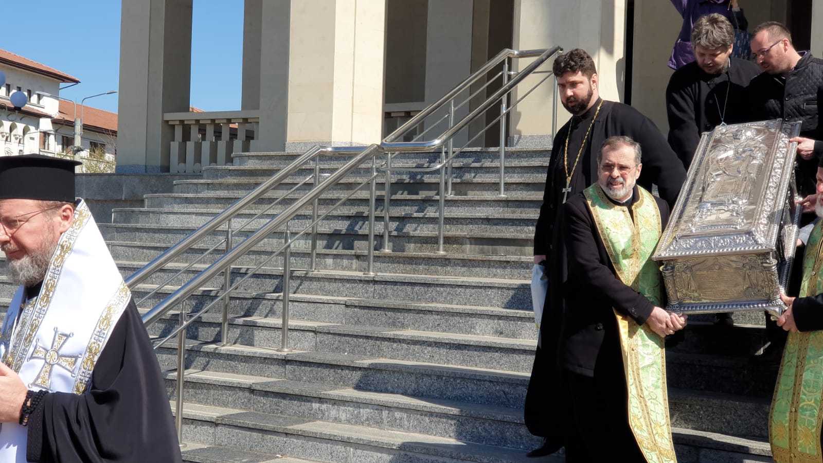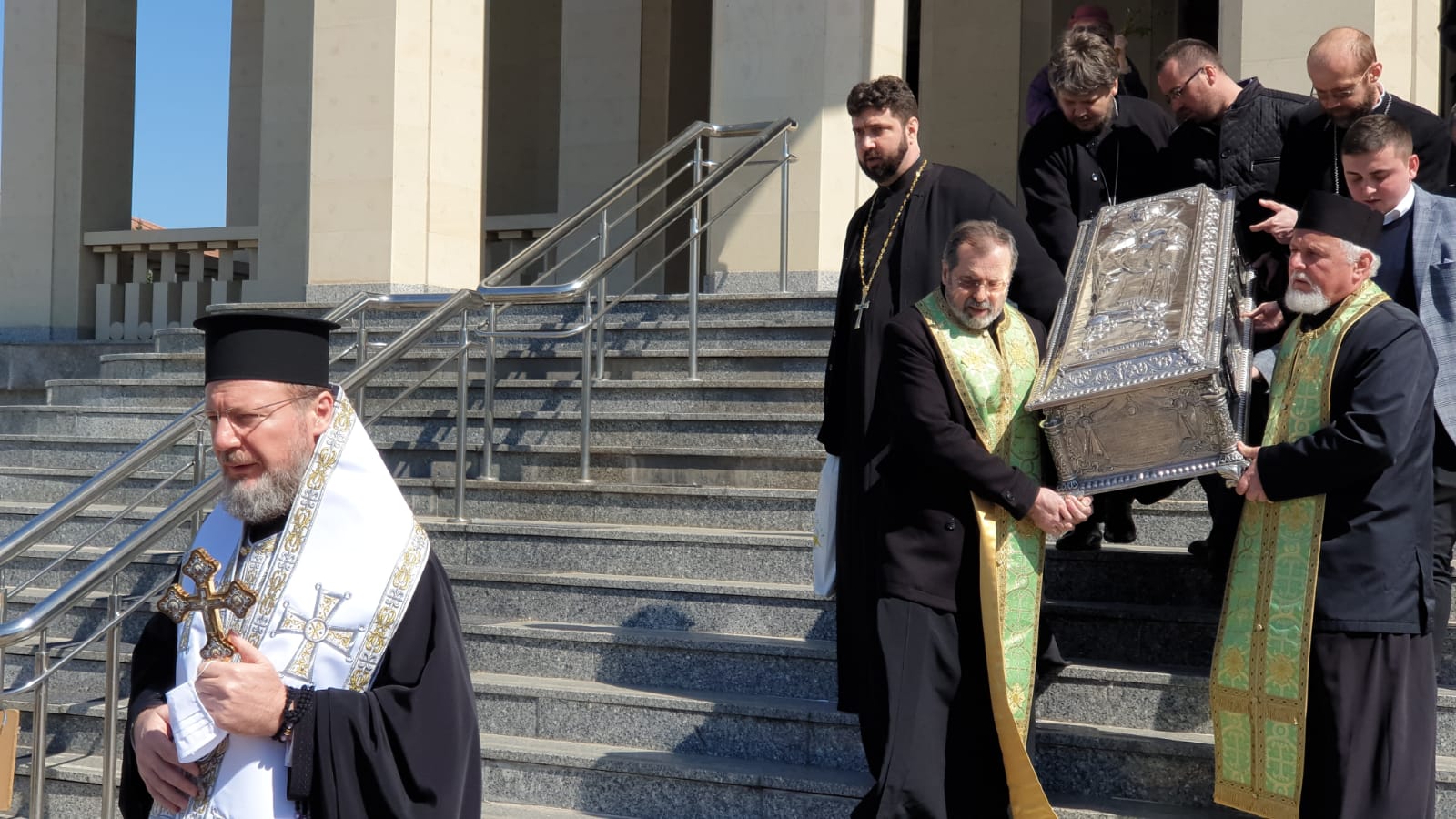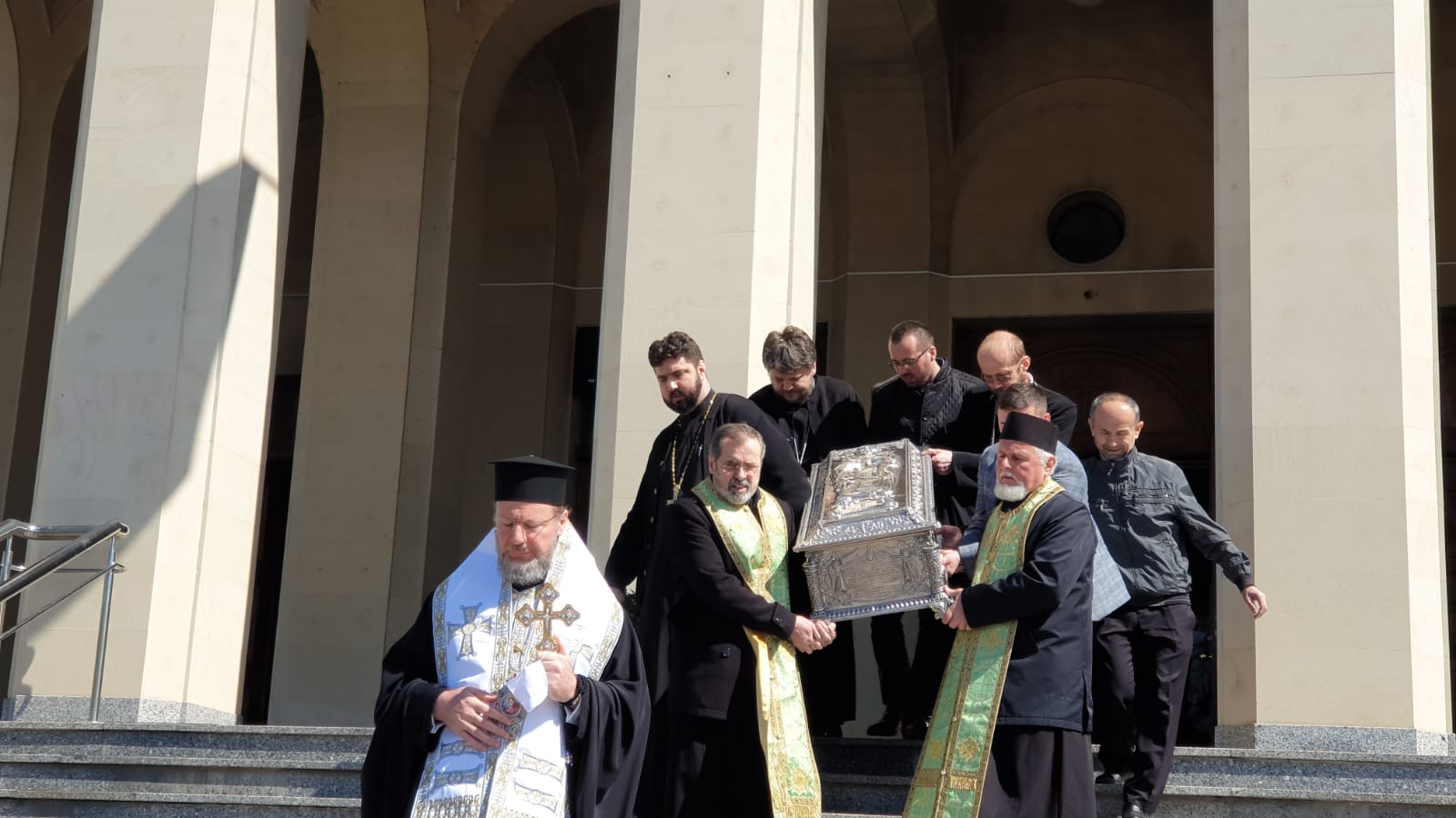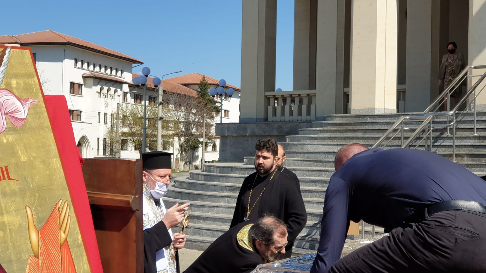 vad in poze cum stau aproape lipiti popii unii de altii Sa nu mai zic de cei care cară obiectul acela pe scari Unde e distanta de 2 m intre oameni? sau asta nu conteaza la popi ? vai de noi ….!