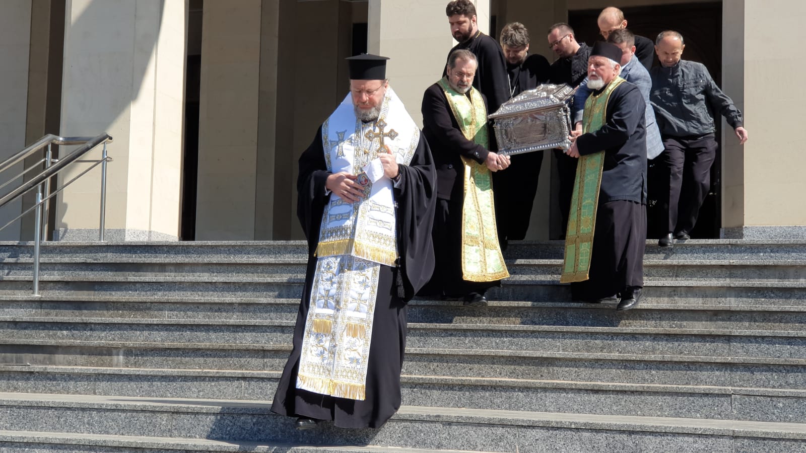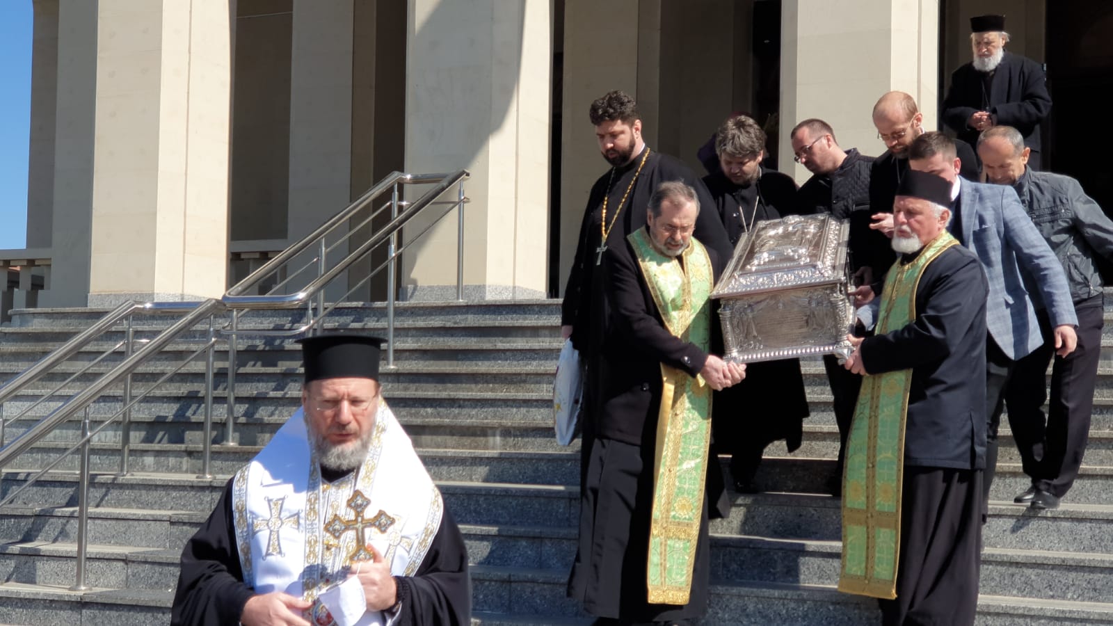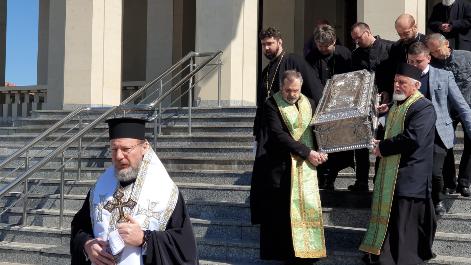 vad in poze cum stau aproape lipiti popii unii de altii Sa nu mai zic de cei care cară obiectul acela pe scari Unde e distanta de 2 m intre oameni? sau asta nu conteaza la popi ? vai de noi ….!