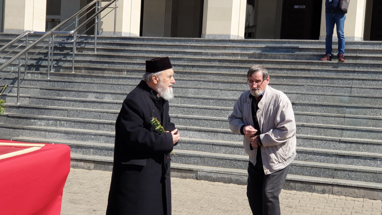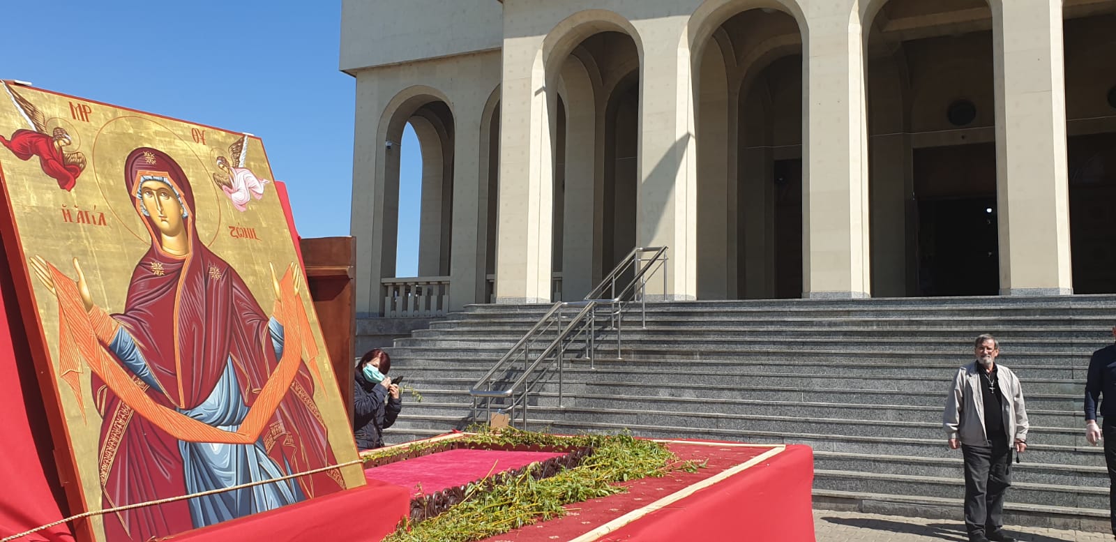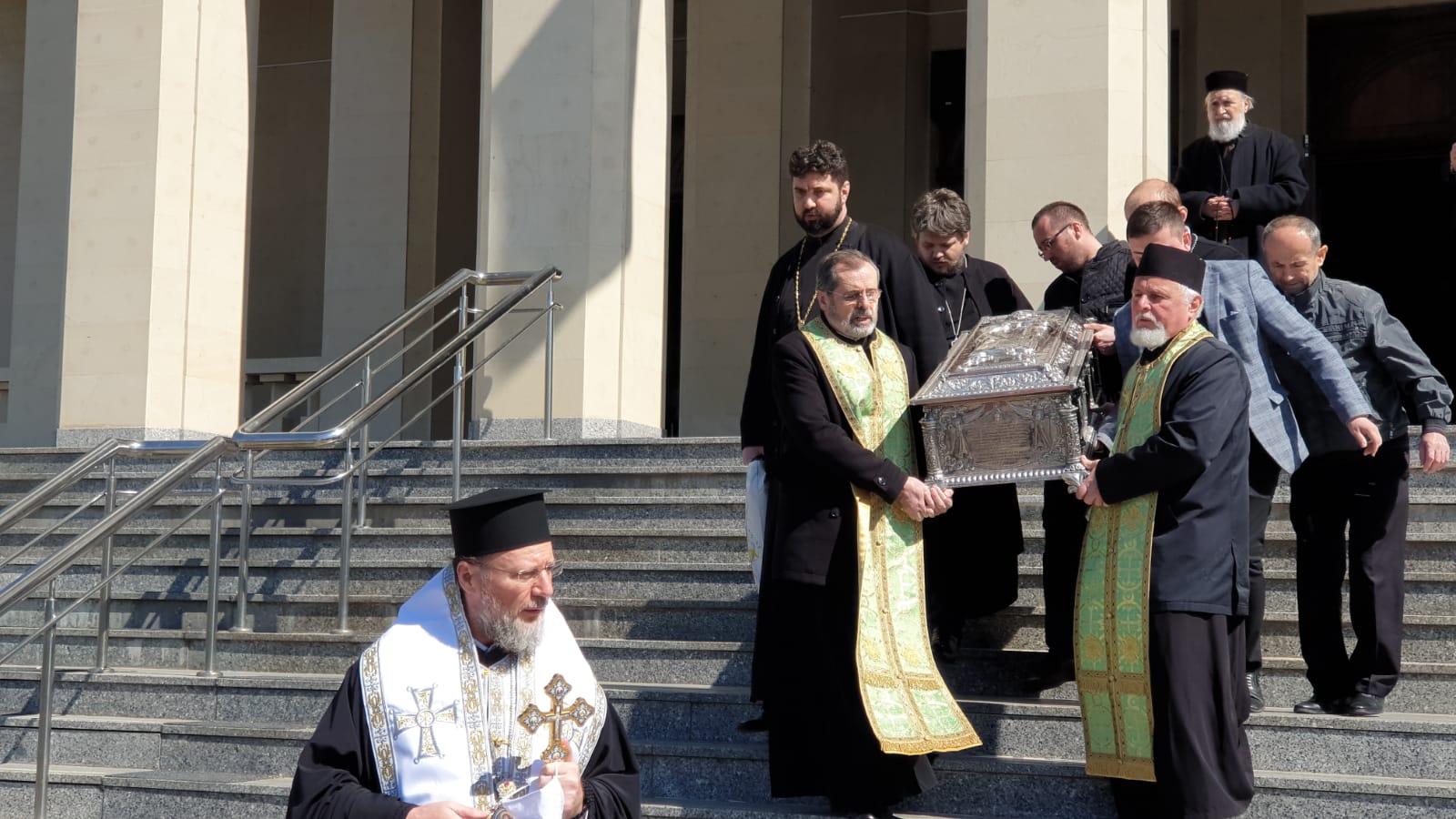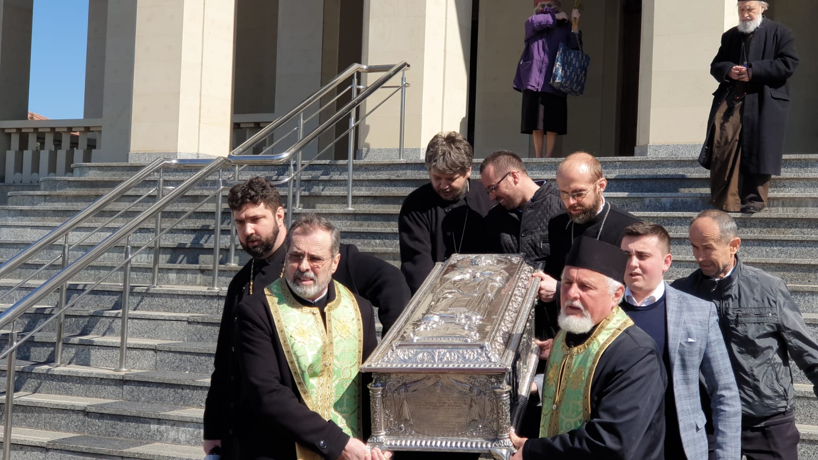 vad in poze cum stau aproape lipiti popii unii de altii Sa nu mai zic de cei care cară obiectul acela pe scari Unde e distanta de 2 m intre oameni? sau asta nu conteaza la popi ? vai de noi ….!