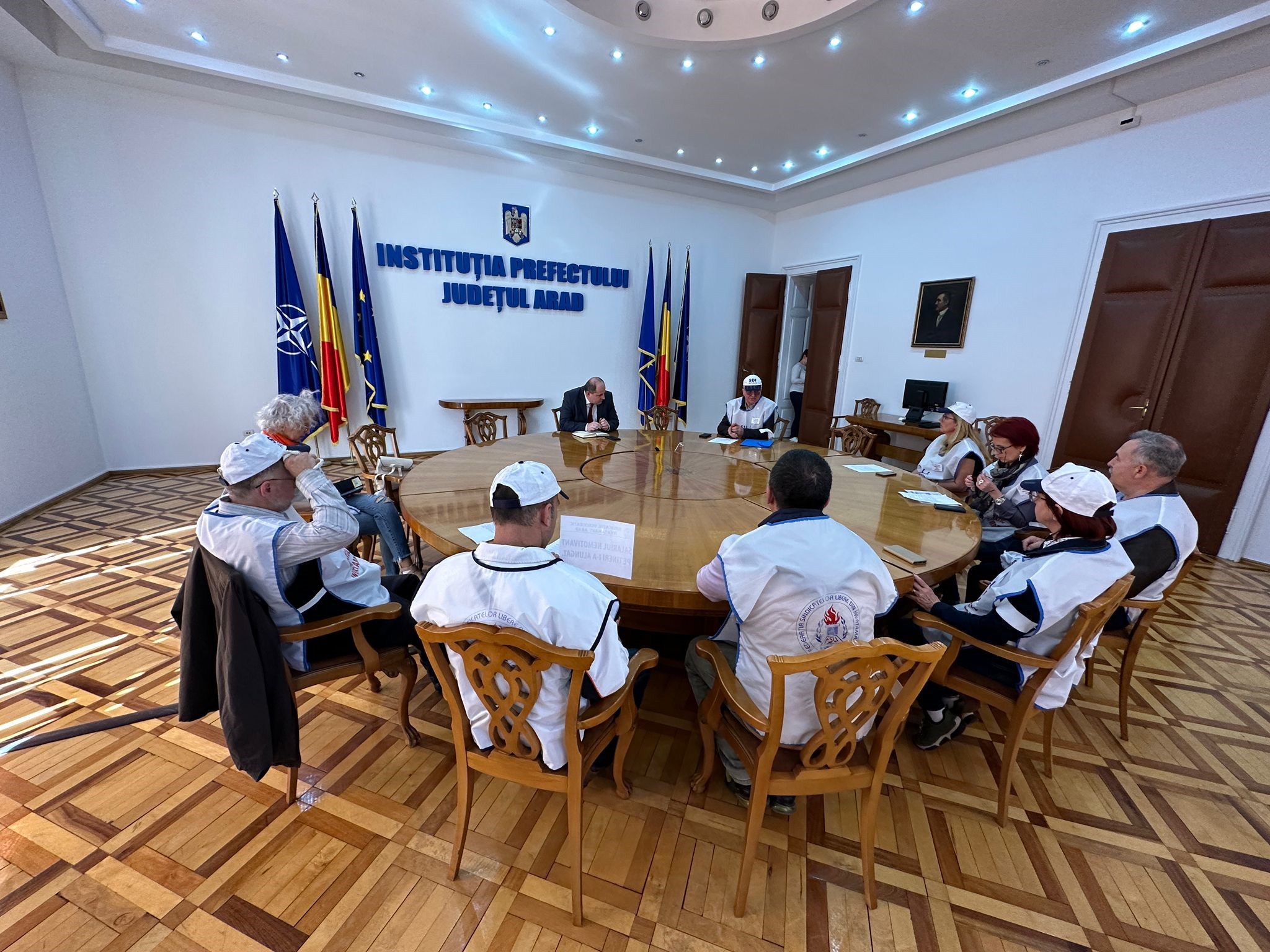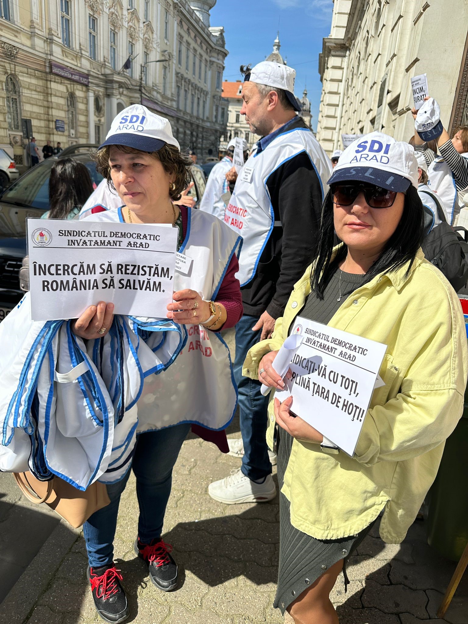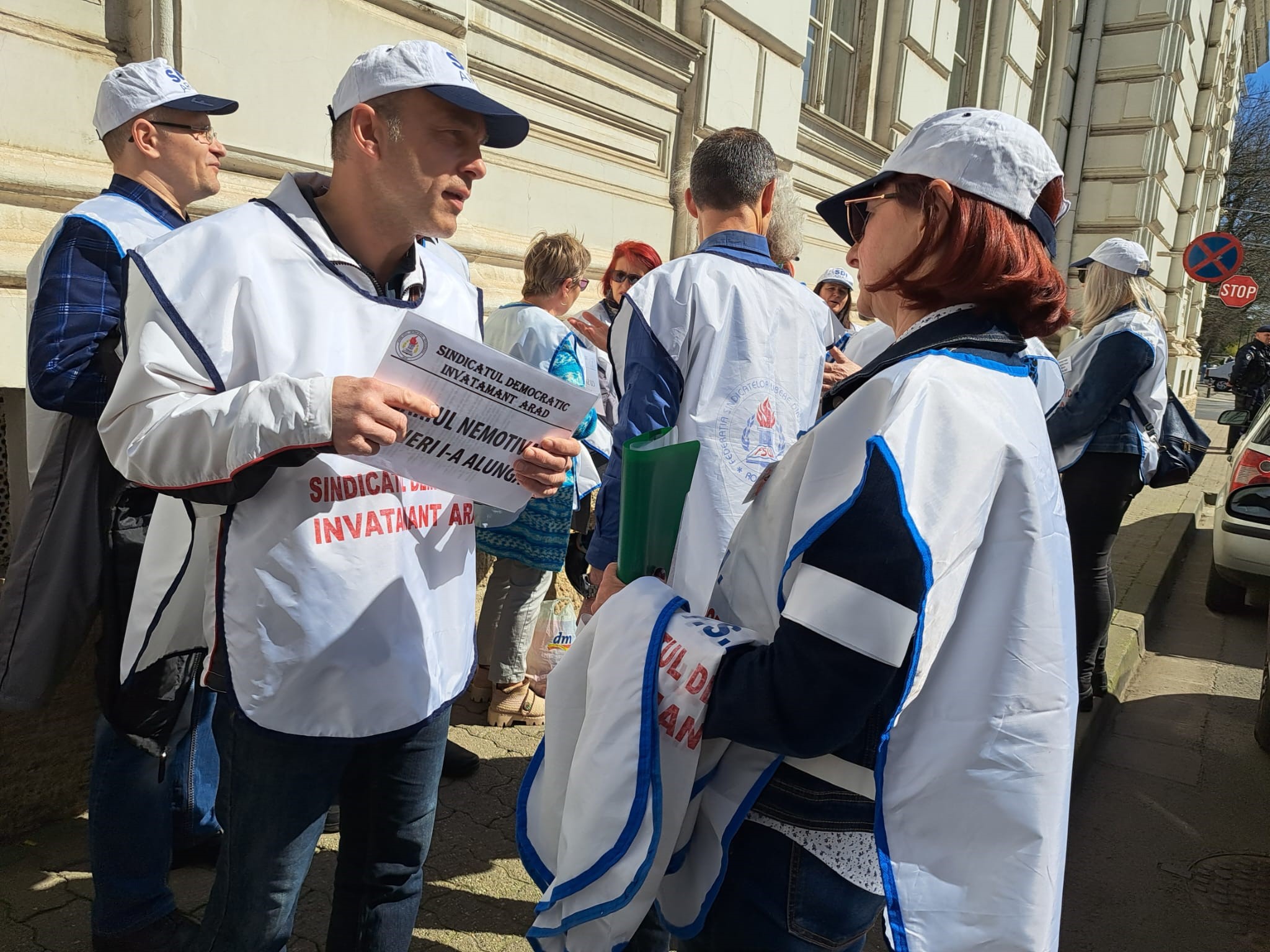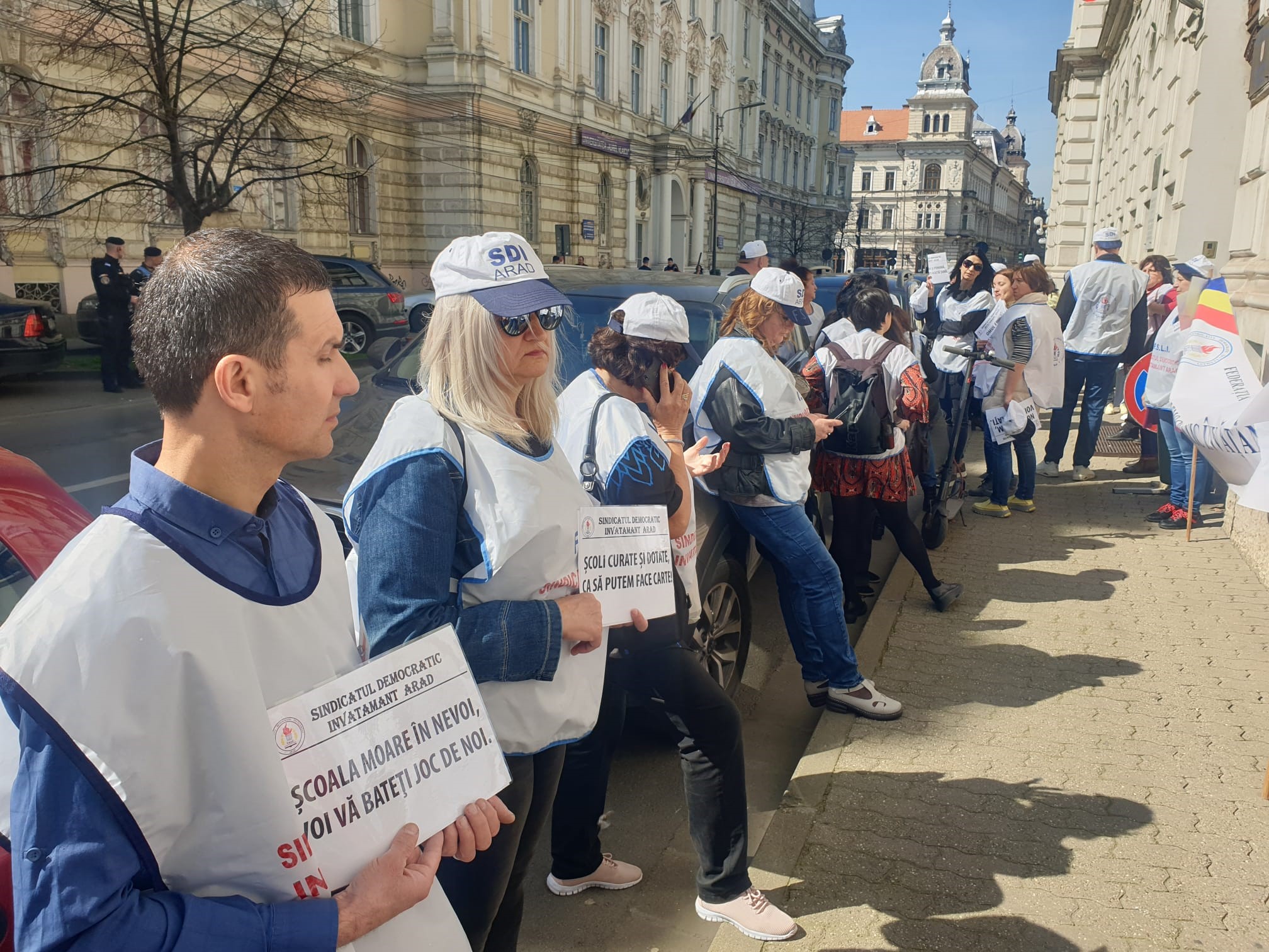 ARAD. Nemulţumiţi de salarii, dar nu numai, zeci de cadre didactice şi angajaţi din învăţământ au pichetat, vineri, 24 martie, sediului Instituţiei Prefectului Judeţului Arad. Protestul s-a desfăşurat între orele 12:00 şi 13:00, iar Dănuţ Ieneşescu, preşedintele SDÎ Arad, a punctat că „această acțiune sindicală se înscrie în seria protestelor declanșate în întreaga țară și care, în cazul nesoluționării revendicărilor personalului din învățământ, vor culmina cu greva generală”.