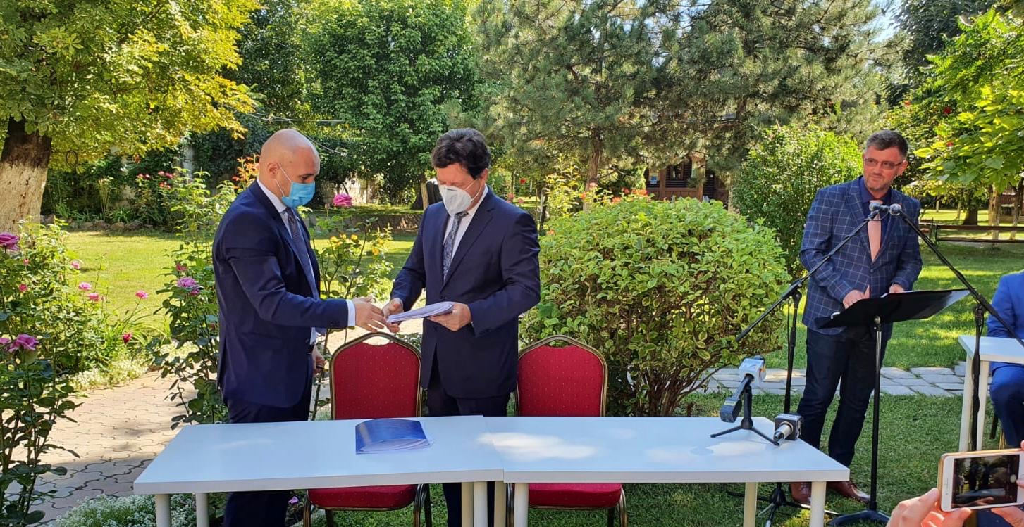 ARAD. Trei proiecte importante pentru sănătatea arădeană, în valoare de peste 7 milioane de euro, a semnat președintele Consiliului Județean Arad, Iustin Cionca, sâmbătă, în prezența premierului României, Ludovic Orban. Este vorba despre următoarele proiecte: „Îmbunătățirea capacității unităților medicale din Județul Arad în contextul pandemiei COVID”, “Creșterea capacității de gestionare a crizei sanitare COVID-19 la Spitalul Clinic Județean de Urgență Arad” și “Echipamente medicale de protecție pentru centrele sociale rezidențiale din Județul Arad, în contextul pandemiei COVID-1”.
