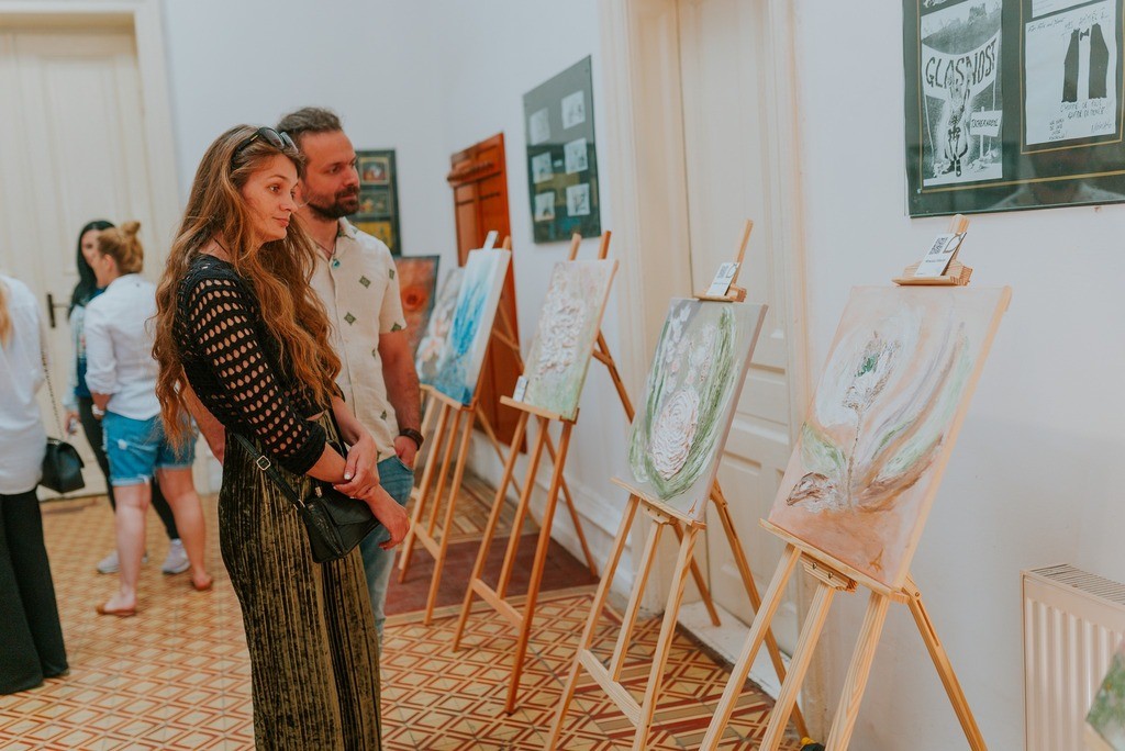 MACEA. Castelul din Macea a fost pentru o zi scena vernisajului artistei Anca Hermenean, prorector al Universității de Vest „Vasile Goldiș” din Arad. Într-un cadru primitor, pe ritmurile lui Chopin, înconjurată de oameni dragi, de familie, prieteni, colegi iubitori de frumos, Anca Hermenean și-a prezentat lucrările realizate în intimitate, departe de agitația vieții academice și sociale, într-un dialog exclusiv cu sinele. Talentul nativ, descoperit la vârsta maturității autoarei, este reflectat de fiecare lucrare în parte.