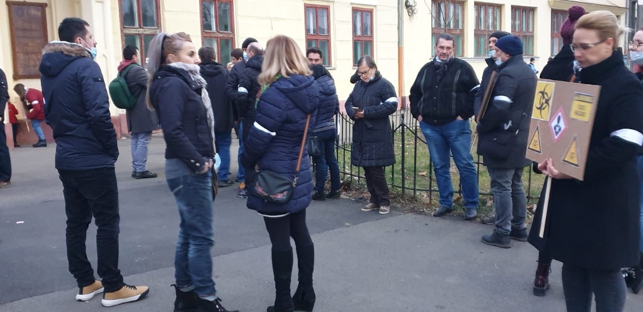 ARAD. Cu măști chirugicale pe față și banderole albe pe brațe, pamenii au protestat în fața liceului german de pe Calea Timișorii, după ce ca urmare a unei acțiuni de dezinsecție, dezinfecție și deratizare zeci de elevi cu vârste cuprinse între 7 și 19 ani au ajuns la spital. Protestarii au avut la ei pancarde cu imagini care sugerează substanțe toxice, pe care, printre altele, scrie “Nu ne otrăviți copiii”, “Vrem dreptate” sau “Copiii mor, contractele rezistă”.