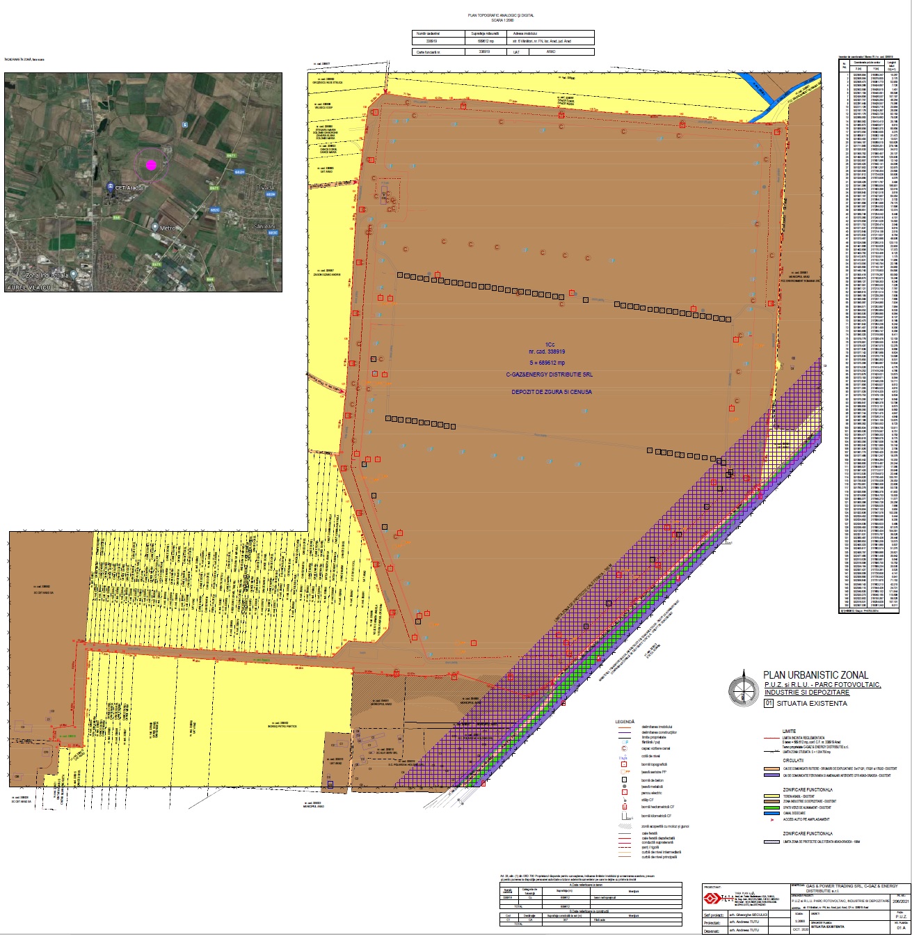 ARAD. Proiectul „Parc fotovoltaic, industrie şi depozitare” amplasat pe Calea 6 Vânători, a ajuns în etapa a doua, cea a elaborării Planului Urbanistic Zonal şi a consultării publicului. Investiţia celor de la C-Gaz & Energy Distribuţie şi Gas &Power Trading SRL (asociere în participaţiune) ar urma să se întindă pe o suprafaţă de 689.612 de metri pătraţi, aparţinând C-Gaz & Energy Distribuţie şi având categoria de folosinţă „curţi-construcţii”. Practic, terenul studiat este reprezentat de fosta haldă de steril şi cenuşă rezultată în urma activităţii de producţie de energie termică de la CET Arad. În prezent, suprafaţa de teren este (doar) întreţinută şi monitorizată post închidere.