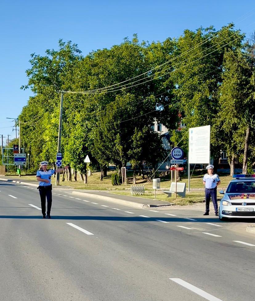 Poliţiştii din Arad, alături de colegii lor din Timiş şi Bihor, au desfăşurat sâmbătă o acţiune rutieră pe toate drumurile naţionale din judeţul nostru. „Sâmbătă, 7 august, în județul Arad, s-a desfășurat o acțiune în sistem integrat, cu participarea polițiștilor din județele Timiș și Bihor, pentru combaterea principalelor cauze generatoare de accidente rutiere”, anunţă IPJ Arad. Nu mai puţin de 62 de poliţişti, dintre care 37 de la Rutieră şi 25 de la Ordine Publică, au participat la această acţiune, la care au fost aduse şi 16 aparate radar care au măsurat viteza pe DN 7, DN 79, DN 79A, DN 69, dar şi în municipiul Arad. „Au fost aplicate 251 de sancțiuni contravenționale, în valoare totală de peste 115.000 de lei, dintre care 128 pentru nerespectarea regimului legal de viteză. Au fost reținute 11 permise de conducere, dintre care 7 pentru viteză excesivă, 2 pentru depășiri neregulamentare și câte unul pentru consum de alcool si neacordarea priorității de trecere pietonilor, și au fost retrase 15 certificate de înmatriculare”, se arată în statisticile Poliţiei din Arad.