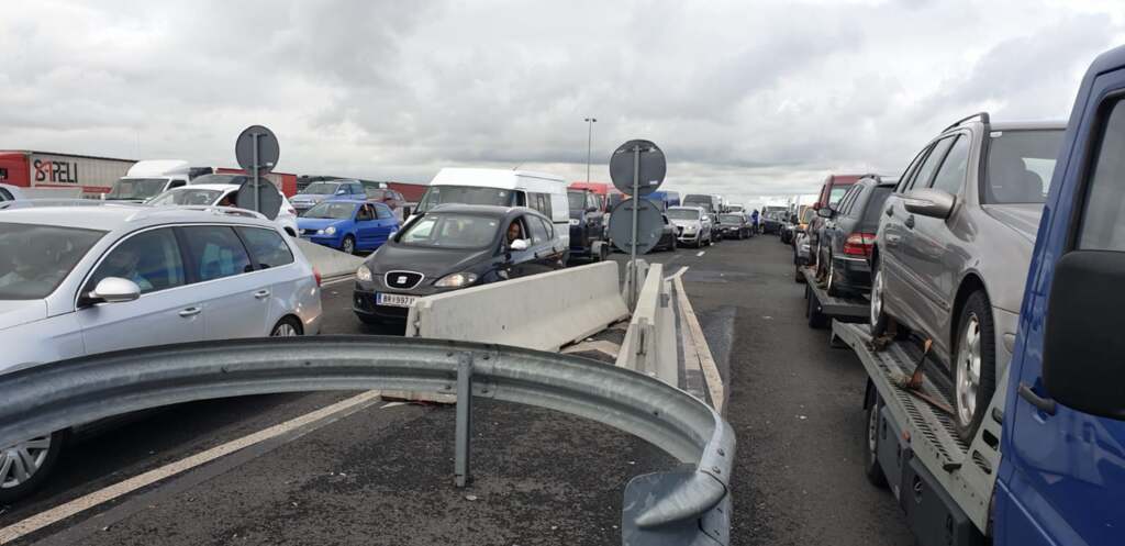 Polițiștii de frontieră au deschis toate benzile de intrare în țară, însă triajul îngreunează foarte mult fluidizarea traficului la graniță. Mii de oameni nervoși, cu copii în brațe, au așteptat ore bune să intre în țară. E un scenariu repetat în ultimele săptămâni, după declanșarea epidemiei. Declarațiile pe propria răspundere lungesc timpii de așteptare, iar oamenii își pierd răbdarea. Marți, în jurul amiezii, timpul de așteptare pentru a ajunge la controlul de frontieră, pe sensul de intrare în țară, era de 150 de minute la Punctul de Trecere a Frontierei (PTF) Nădlac II Autostradă și de 60 de minute la PTF Nădlac I, conform aplicației Info Trafic a Poliției de Frontieră. Pe sensul de ieșire din România, la frontiera Nădlac I se aștepta 100 de minute, iar la PTF Nădlac II Autostradă, 20 de minute.