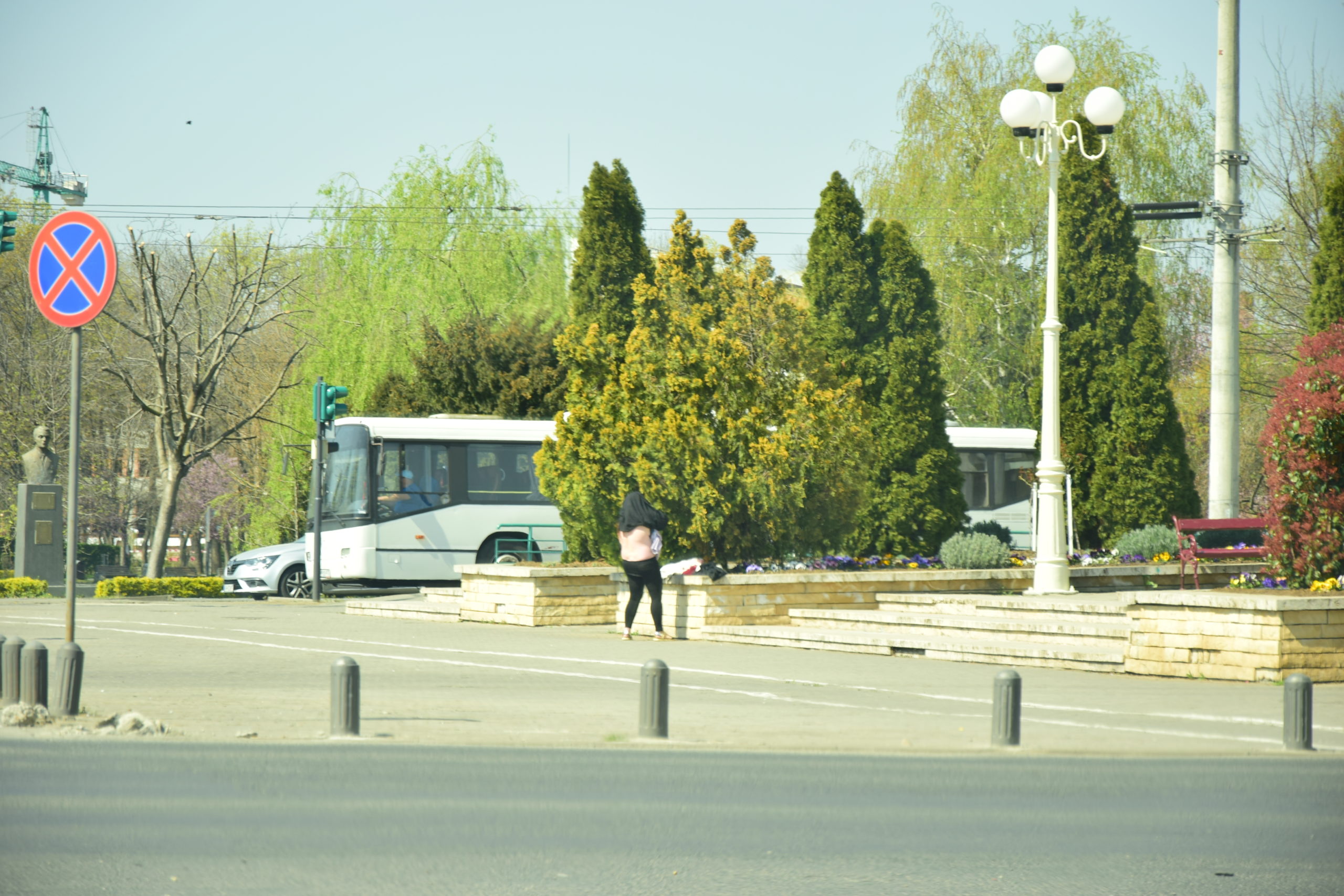 Și-a dat bluza de pe ea jos și preț de câteva secunde a rămas la bustul gol. În spațiul verde din fața bisericii avea niște haine aruncate dintr-o plasă, haine dintre care, mai apoi, și-a luat un tricou. Prea multe despre gestul femeii care a ales să se schimbe în plin centrul orașului nu sunt de spus. Probabil a profitat de faptul că, în plină pandemie, traficul este redus, cei mai mulți dintre cetățeni fiind în izolare la domiciliu.