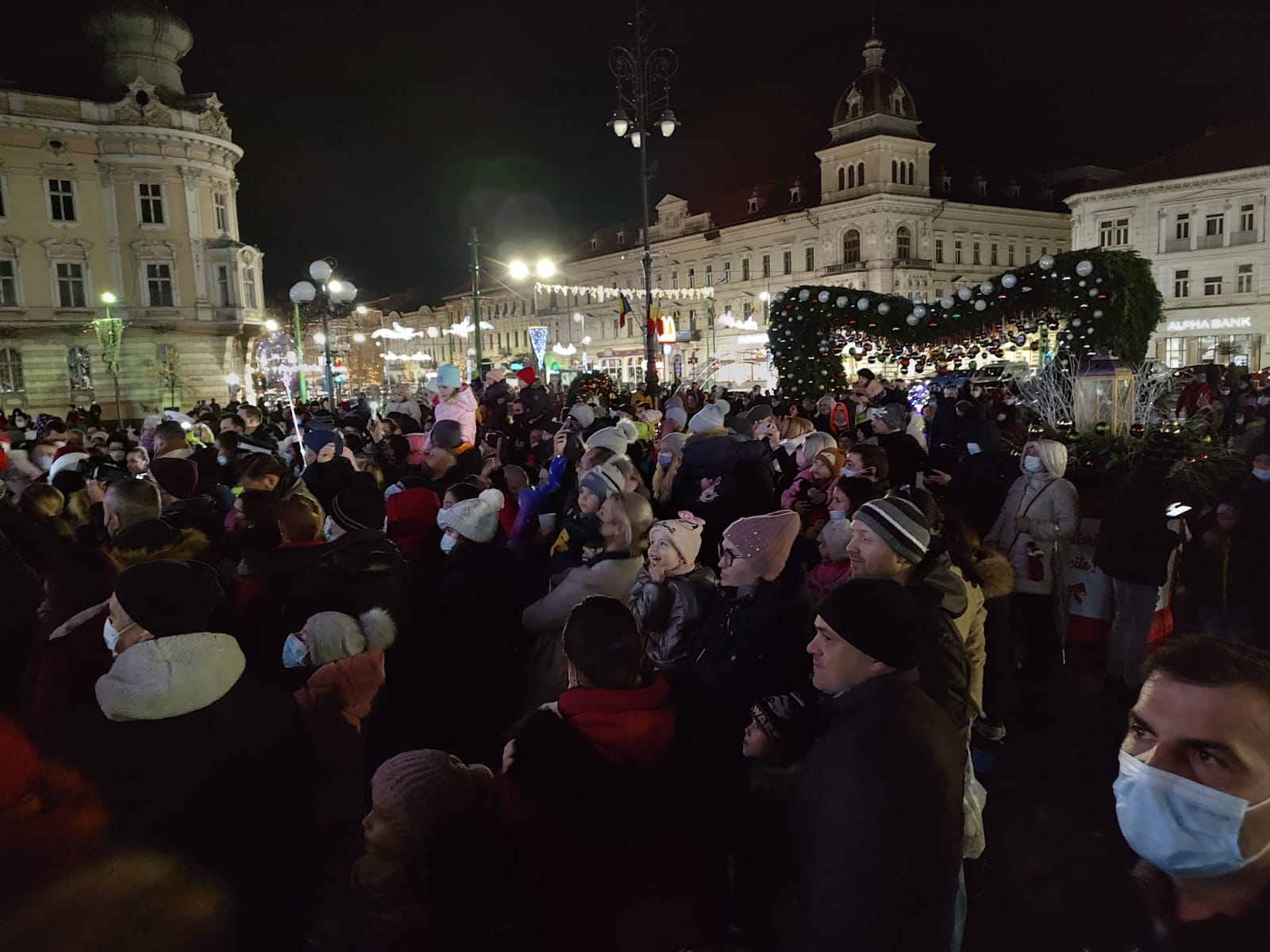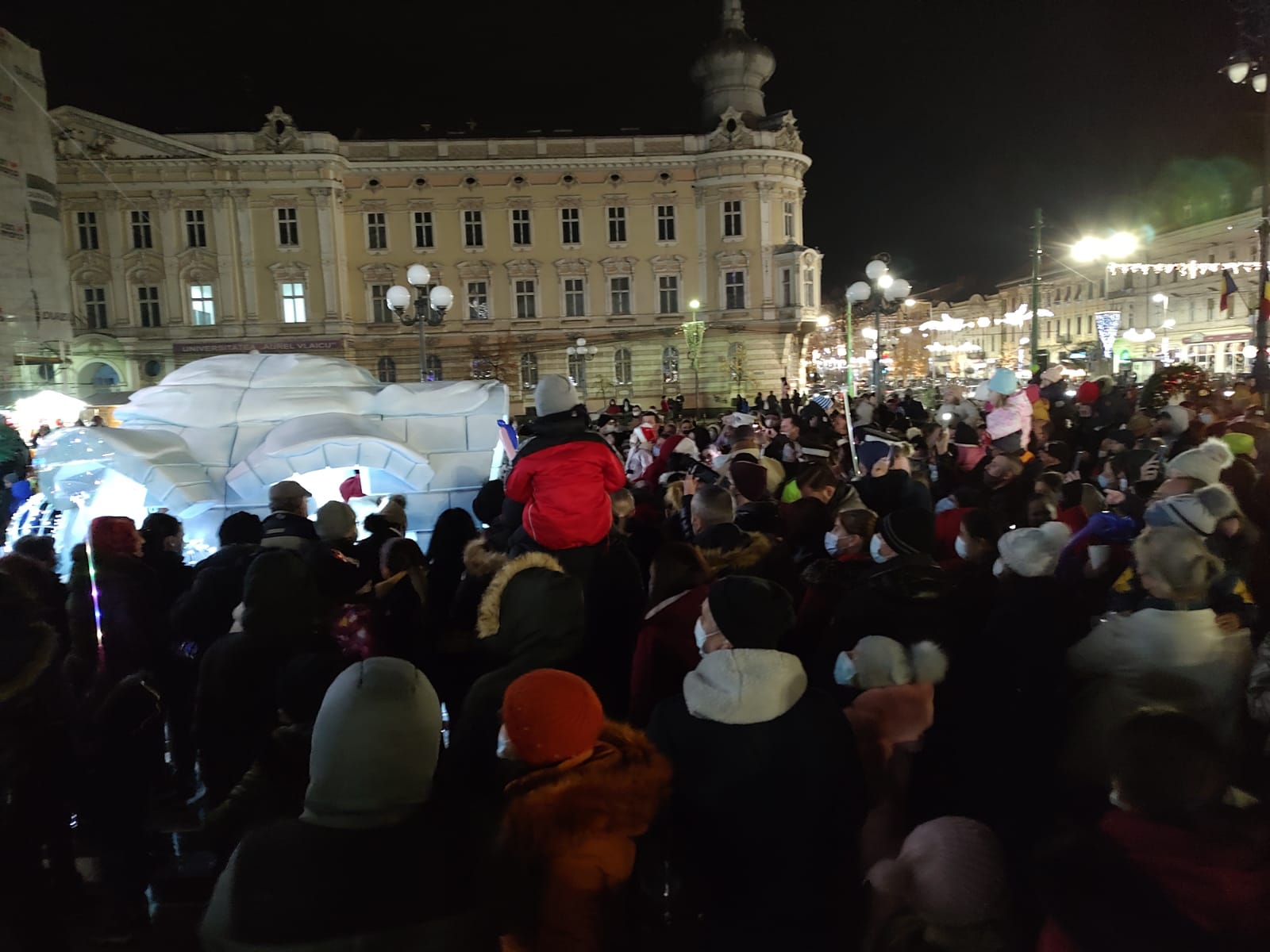 Păstrând tradiția aprinderii luminilor de sărbătoare pe 5 decembrie, primarul Călin Bibarț a venit în fața zecilor de arădeni adunați pe platou alături de chiar Moș Nicolae. A urmat numărătoarea inversă și sper bucuria celor mici beculețele au fost aprinse.