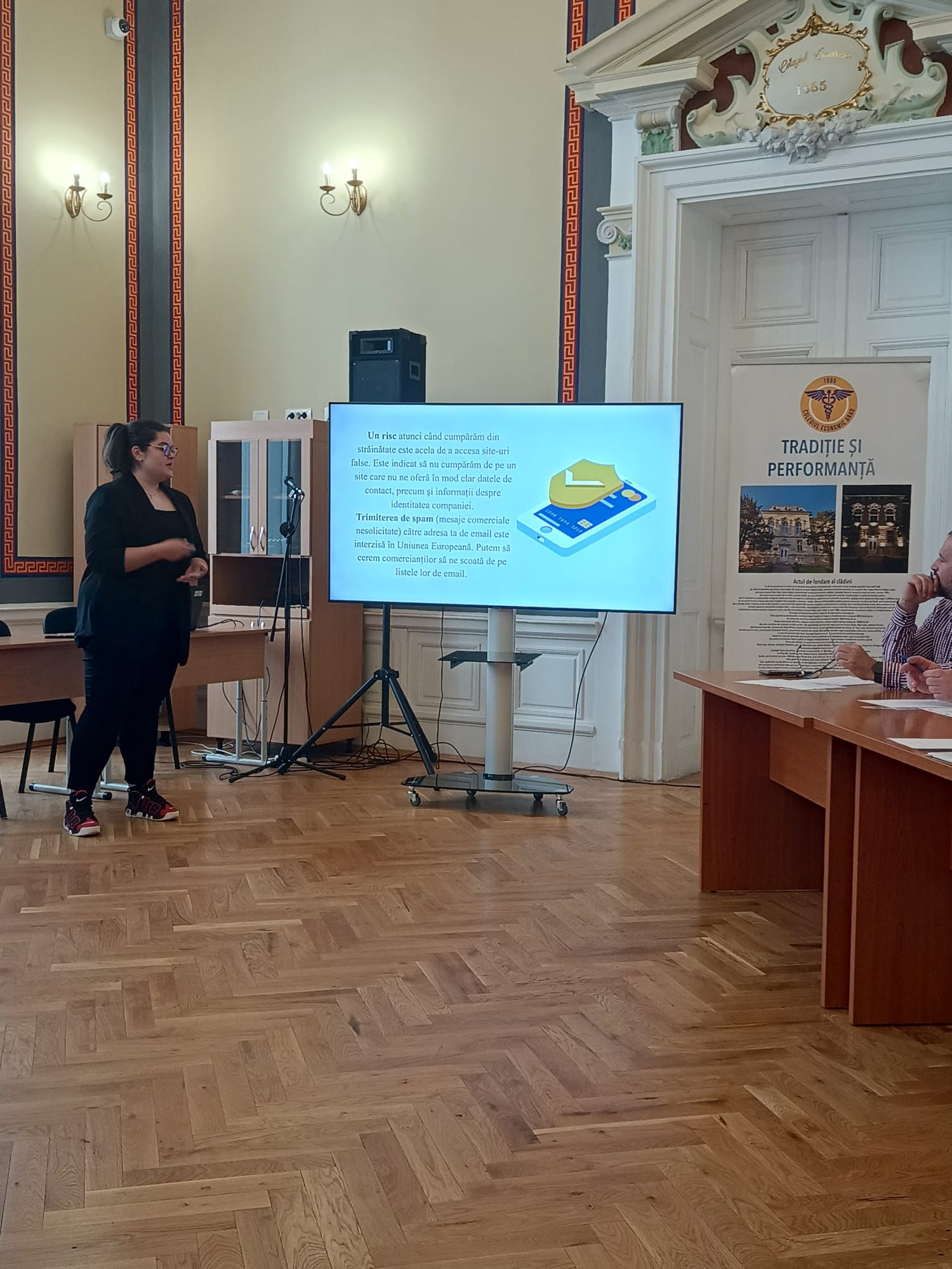 Elevii au avut de susținut două probe: un test grilă și prezentarea unui eseu pe tema ”CÂT DE SIGUR ESTE COMERȚUL PE PLATFORMELE INTERNAȚIONALE”.