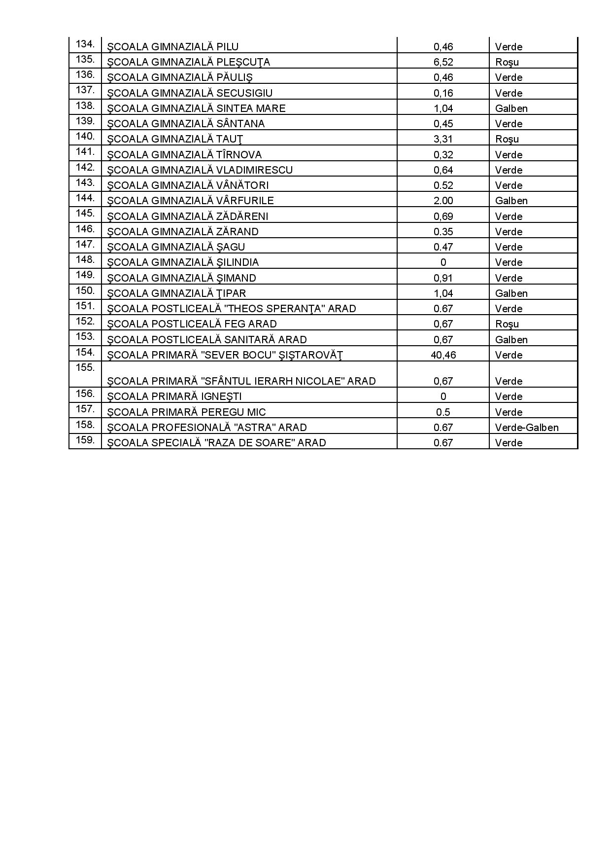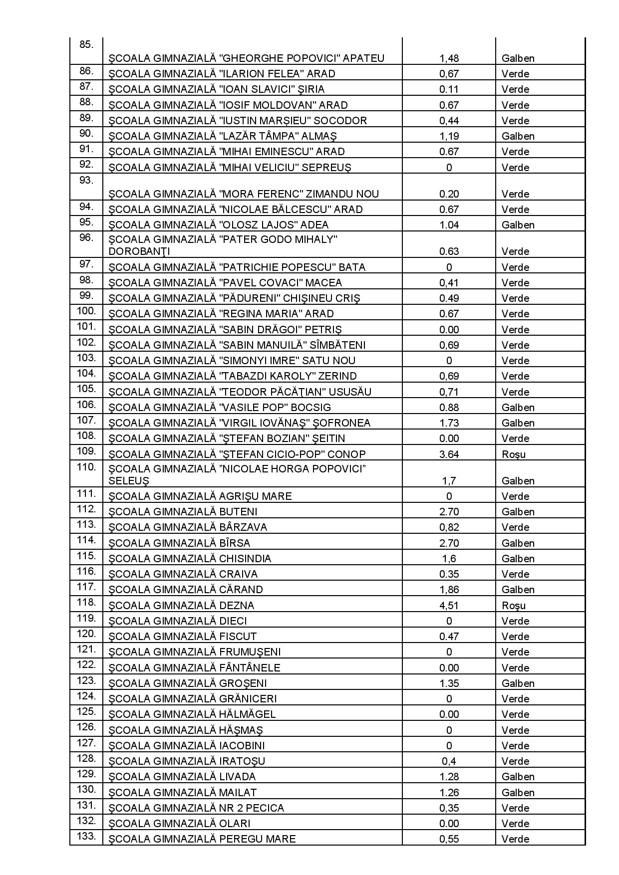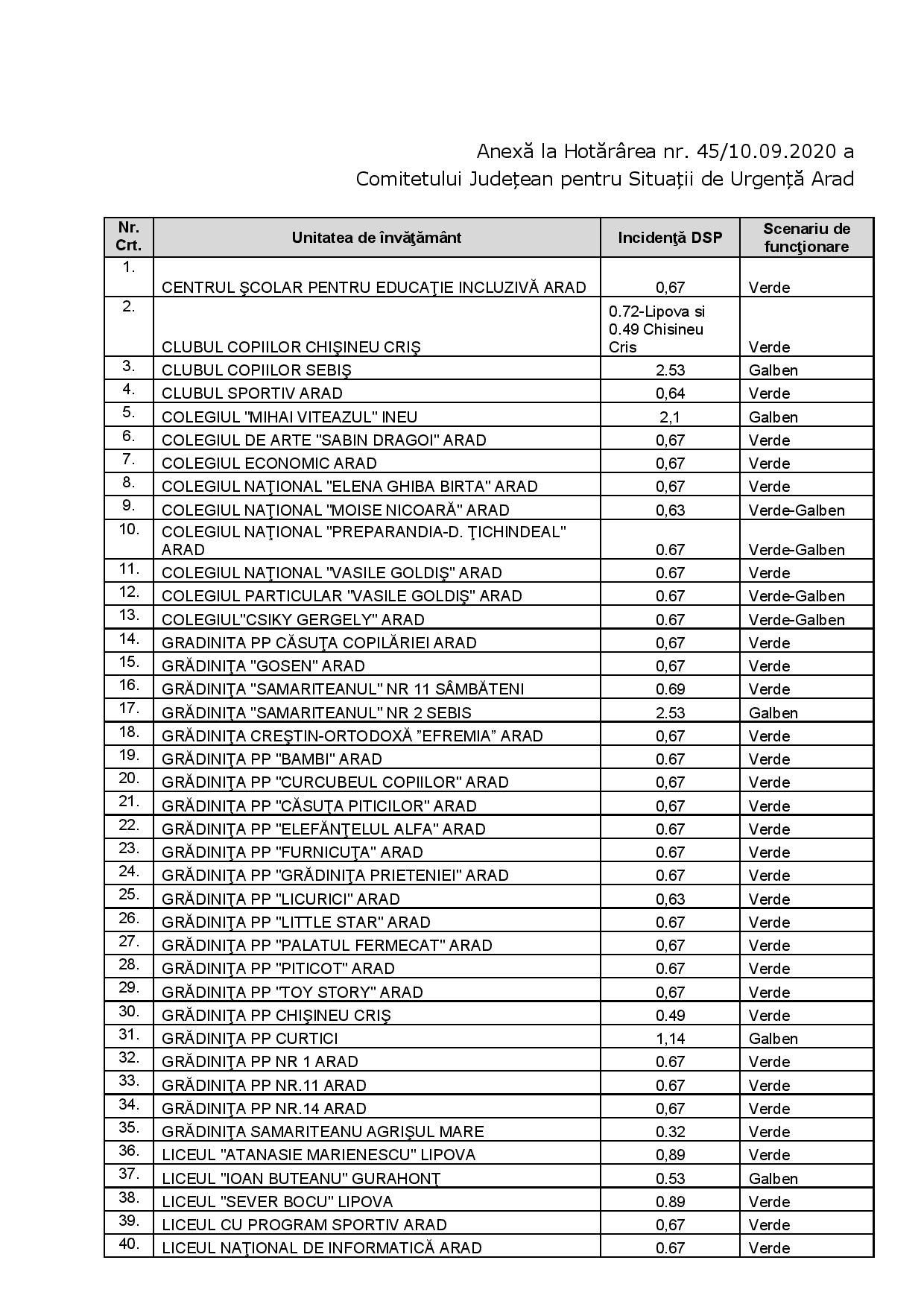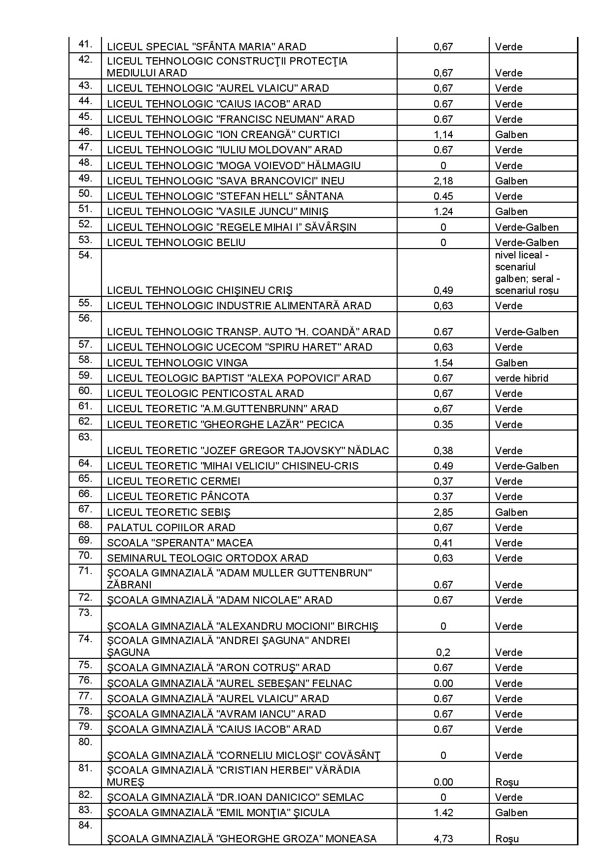 Lista completă a școlilor, cu scenariul care se va aplica din 14 septembrie, poate fi consultată mai jos