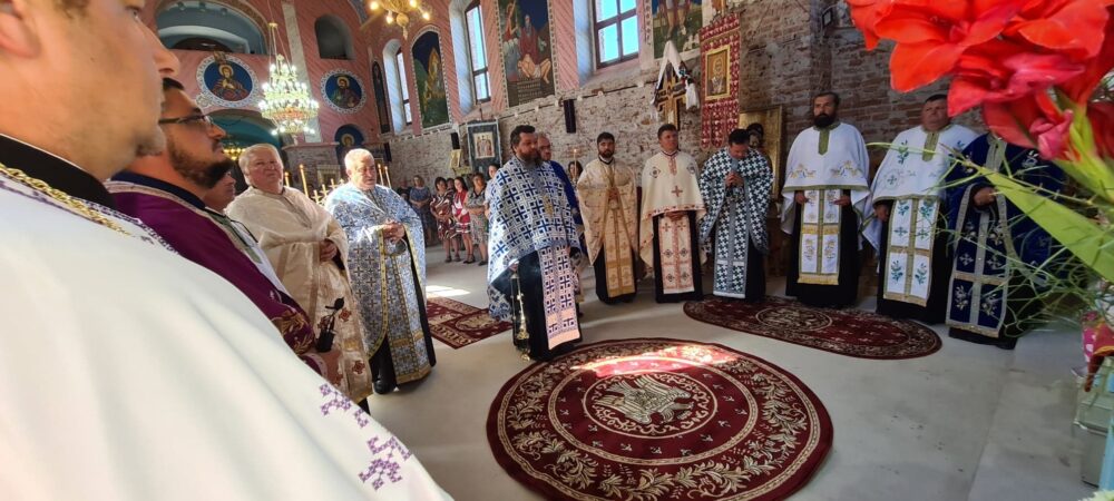 Un sobor de preoţi, avându-l în frunte pe Preacuviosul Părinte Iustin Popovici, consilier cultural al Arhiepiscopiei Aradului, a săvârșit slujba Vecerniei, după care s-au citit și rugăciunile de binecuvântare a roadelor celor noi.