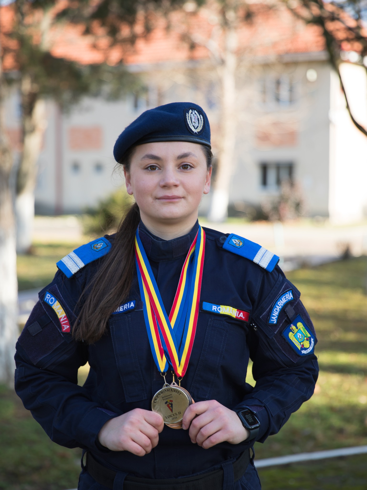 Împreună cu ceilalți absolvenți, avem plăcerea de a o prezenta pe sergent major Ilie Andreea Raluca, în vârstă de 20 de ani, absolventă a Școlii Militare de Jandarmi <Petru Rareș> Fălticeni, promoția 2024. Andreea a dat dovadă de un spirit competitiv remarcabil încă de la o vârstă fragedă, obținând performanțe notabile în boxul feminin. Ea este Vicecampioană Națională la tineret și senioare și a obținut locul 2 la Cupa României la senioare. Cu o atitudine determinată și un angajament exemplar, Andreea își va aduce un aport valoros echipei noastre. Suntem încrezători că, alături de ceilalți colegi, va contribui cu succes la realizarea misiunilor noastre”, a transmis IJJ Arad pe pagina sa de Facebook.