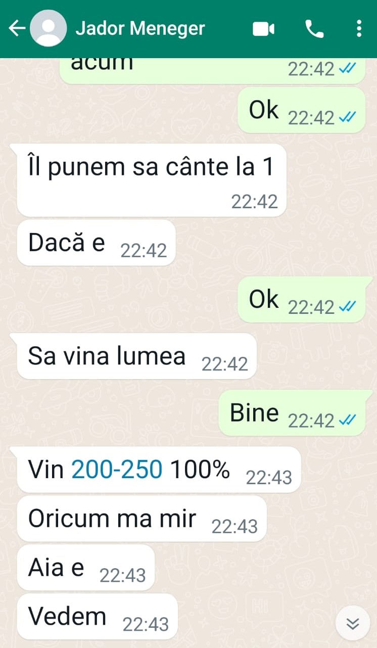 ARAD. Din luna martie, patronul sălii de evenimente din Arad a negociat cu staff-ul cântărețului pentru o seară lăutărească ce ar fi trebuit să aibă loc pe data de 20 mai. Pentru prestația sa de o oră, Jador ar fi trebuit să încaseze 6.500 de euro, a și primit un acont de 1.000 de euro, pentru care patronii arădeni nu au primit nici până astăzi factura. Deși organizatorii sperau să adune 500 de oameni la concert, numărul rezervărilor a fost atât de mic, încât susținerea concertului nu ar mai fi fost rentabilă. Jador și staff-ul său au insistat însă să vină la Arad, convinși fiind că manelistul va aduna în sală sute de oameni. Nu a fost însă așa, deși artistul s-a filmat și a promovat cântarea.