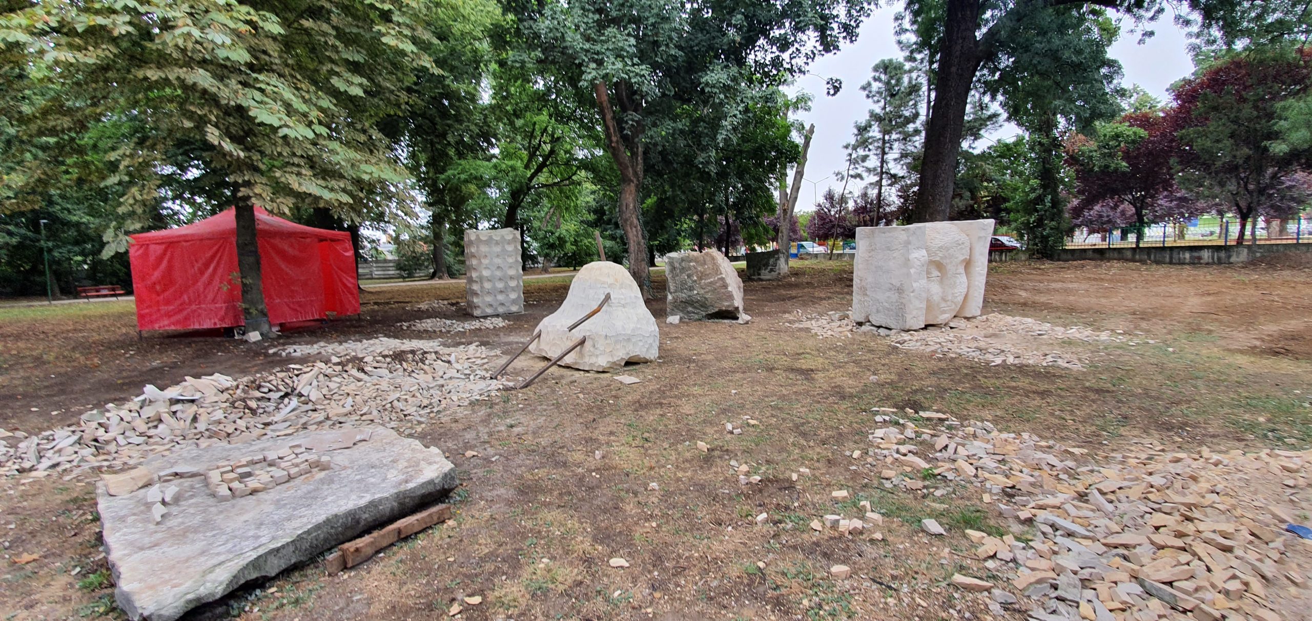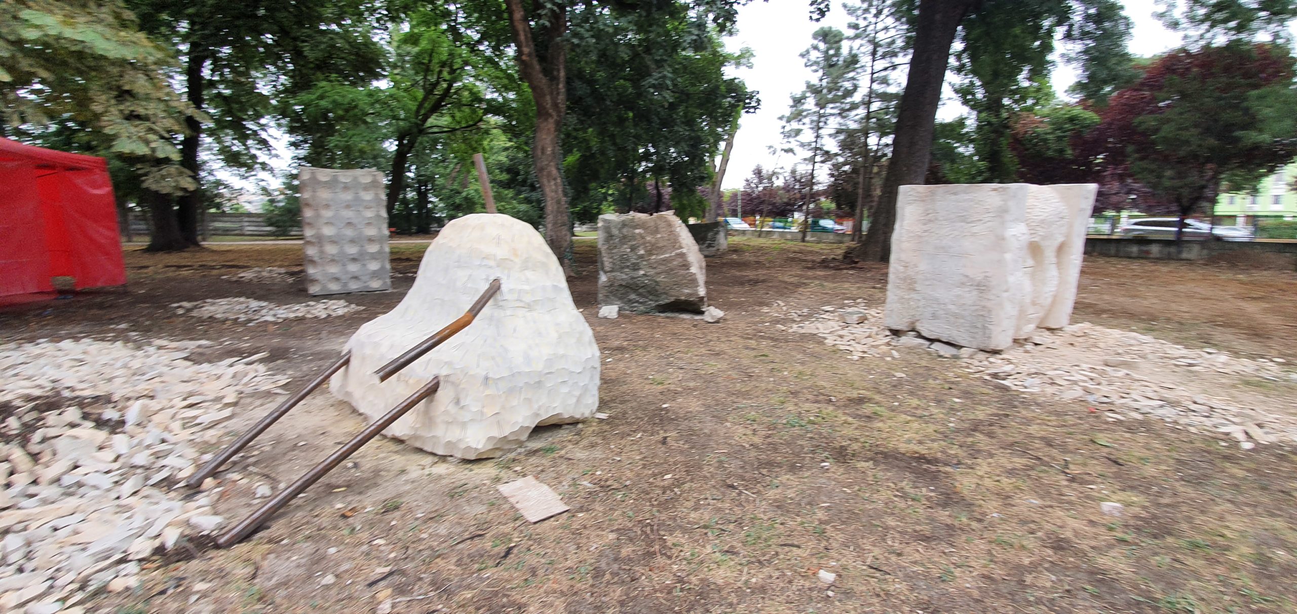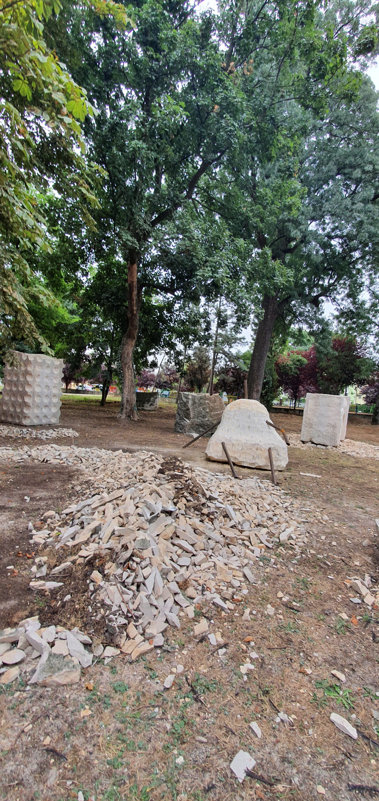 Cinci din cele opt blocuri de calcar au fost transformate pe parcursul lunii august de către cinci sculptori invitaţi să participe la tabăra de creaţie: Elena Ilash, Florin Marin, Alexandru Potecă şi studenţii Alexandru Smuczer şi Vlad Emană, tabăra de creaţie fiind precedată de o expoziţie a schiţelor de lucru ale sculptorilor.