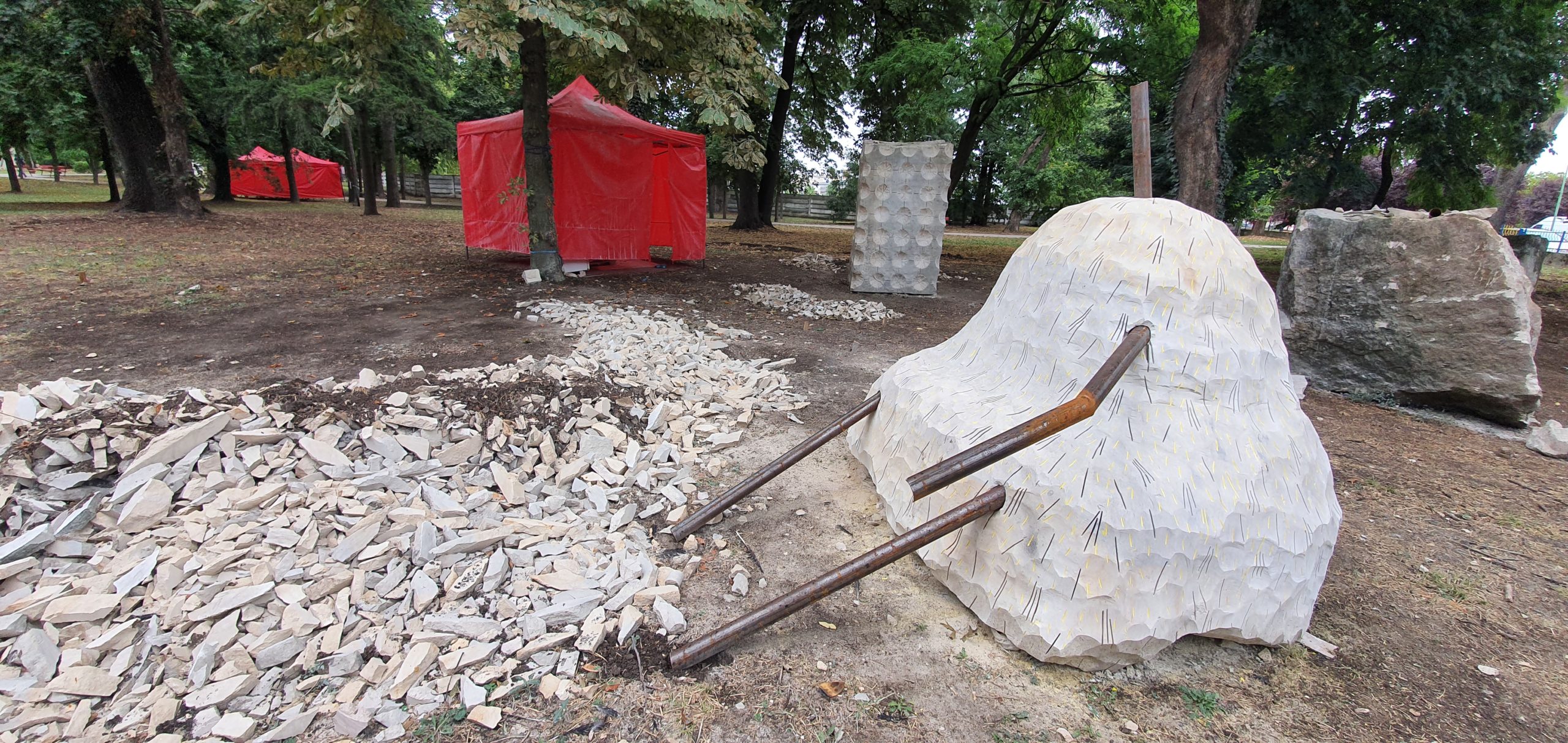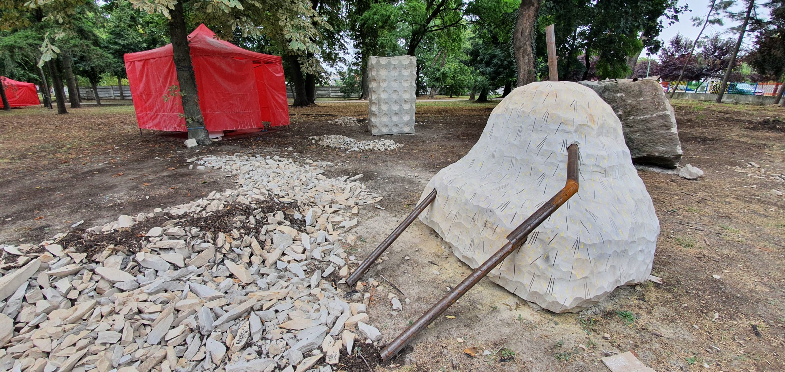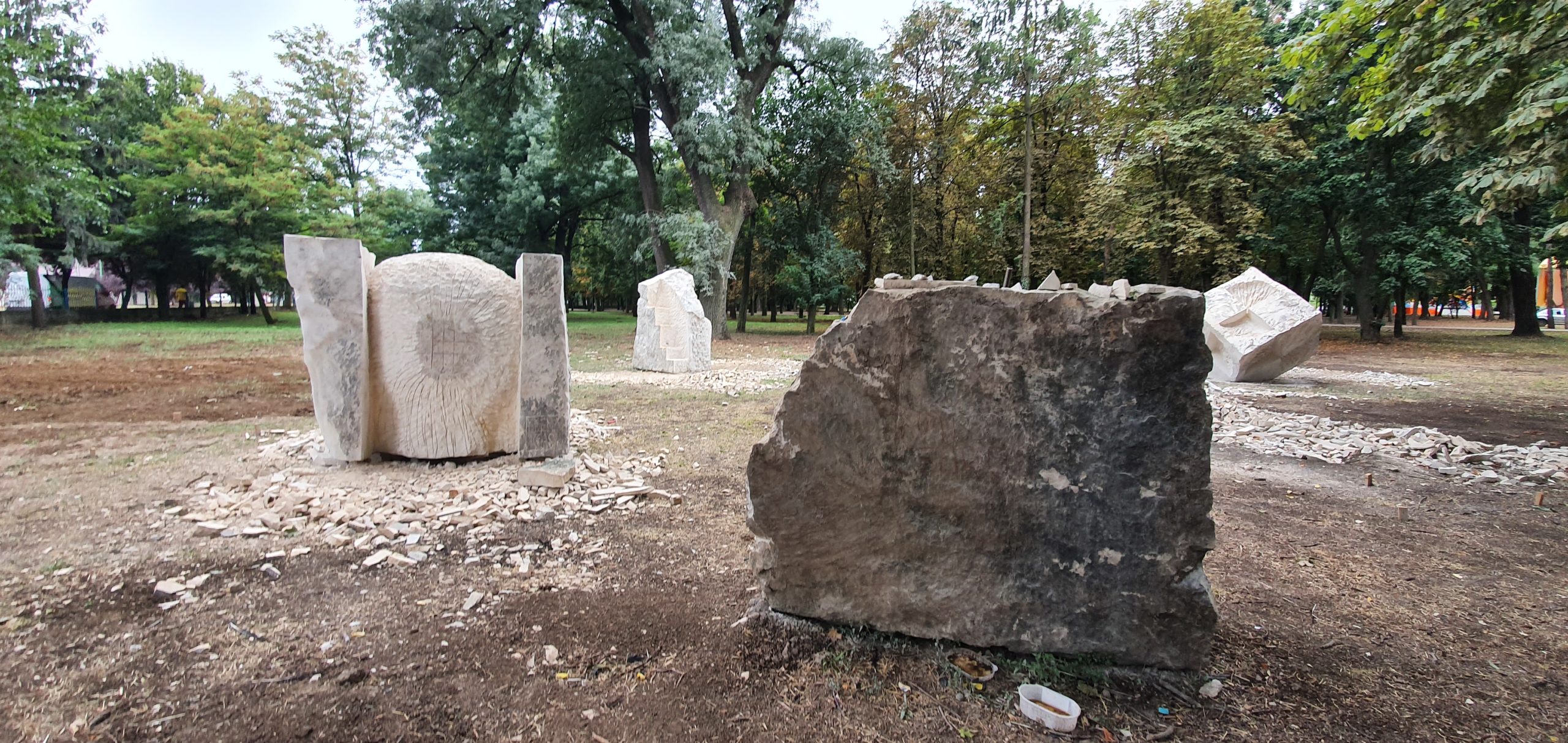 Cinci din cele opt blocuri de calcar au fost transformate pe parcursul lunii august de către cinci sculptori invitaţi să participe la tabăra de creaţie: Elena Ilash, Florin Marin, Alexandru Potecă şi studenţii Alexandru Smuczer şi Vlad Emană, tabăra de creaţie fiind precedată de o expoziţie a schiţelor de lucru ale sculptorilor.