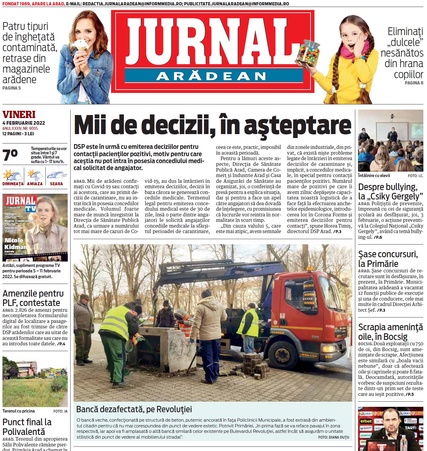 La sugestia cititorului nostru, am întrebat Primăria ce s-a întâmplat cu banca dezafectată din faţa Policlinicii Municipale. Am aflat că aceasta „a fost transportată în depozitul Recons, unde va fi păstrată până când se va decide în legătură cu o eventuală recondiţionare a ei”.
