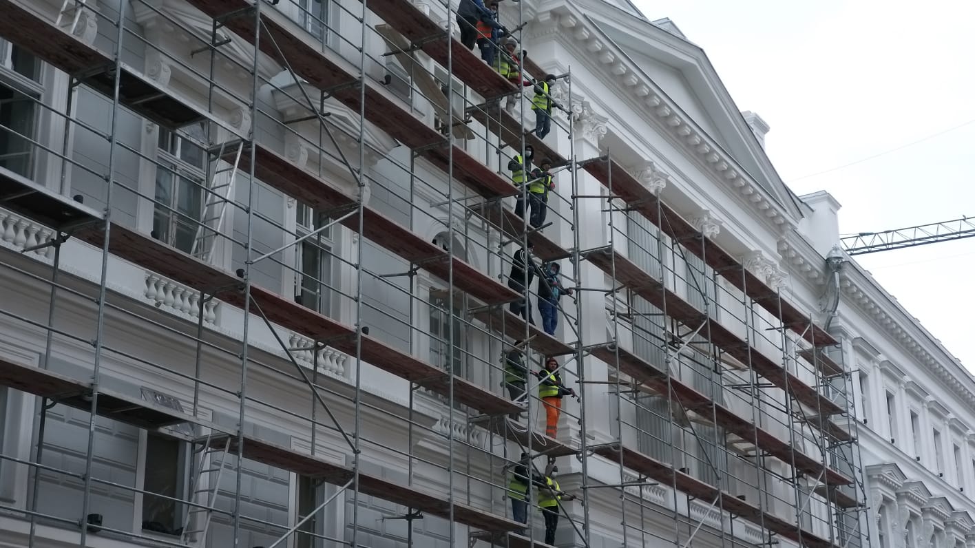 În urmă cu mai bine de 20 de zile, Primăria Municipiului Arad transmitea că lucrările de la Teatru sunt în grafic, acoperișul fiind aproape gata, fațadele și tâmplăria din curtea interioară fiind deja refăcute. „Se execută lucrări de restaurare a tâmplăriei exterioare și de înlocuire a celei din PVC cu tâmplărie din lemn, conform proiectului”, spuneau cei de la Primărie pe 29 ianuarie. După finalizarea restaurării fațadelor laterale – dinspre strada Vasile Goldiș și dinspre strada Unirii – constructorul, SC Tehnodomus SRL, a început să demonteze schelele, urmând ca acestea să fie montate pe fațada principală, cea dinspre bulevardul Revoluției, respectiv pe cea din spatele clădirii, dinspre piața Avram Iancu.