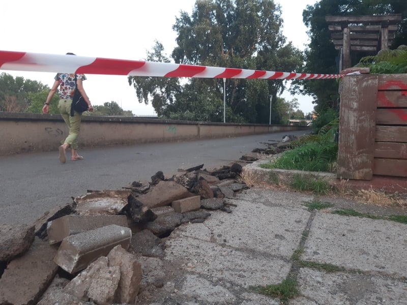 Asfaltul de pe dig se crapa mai mult din cauza sapatului trandafirilor, care incet, incet goleste pamintul de dedesupt.