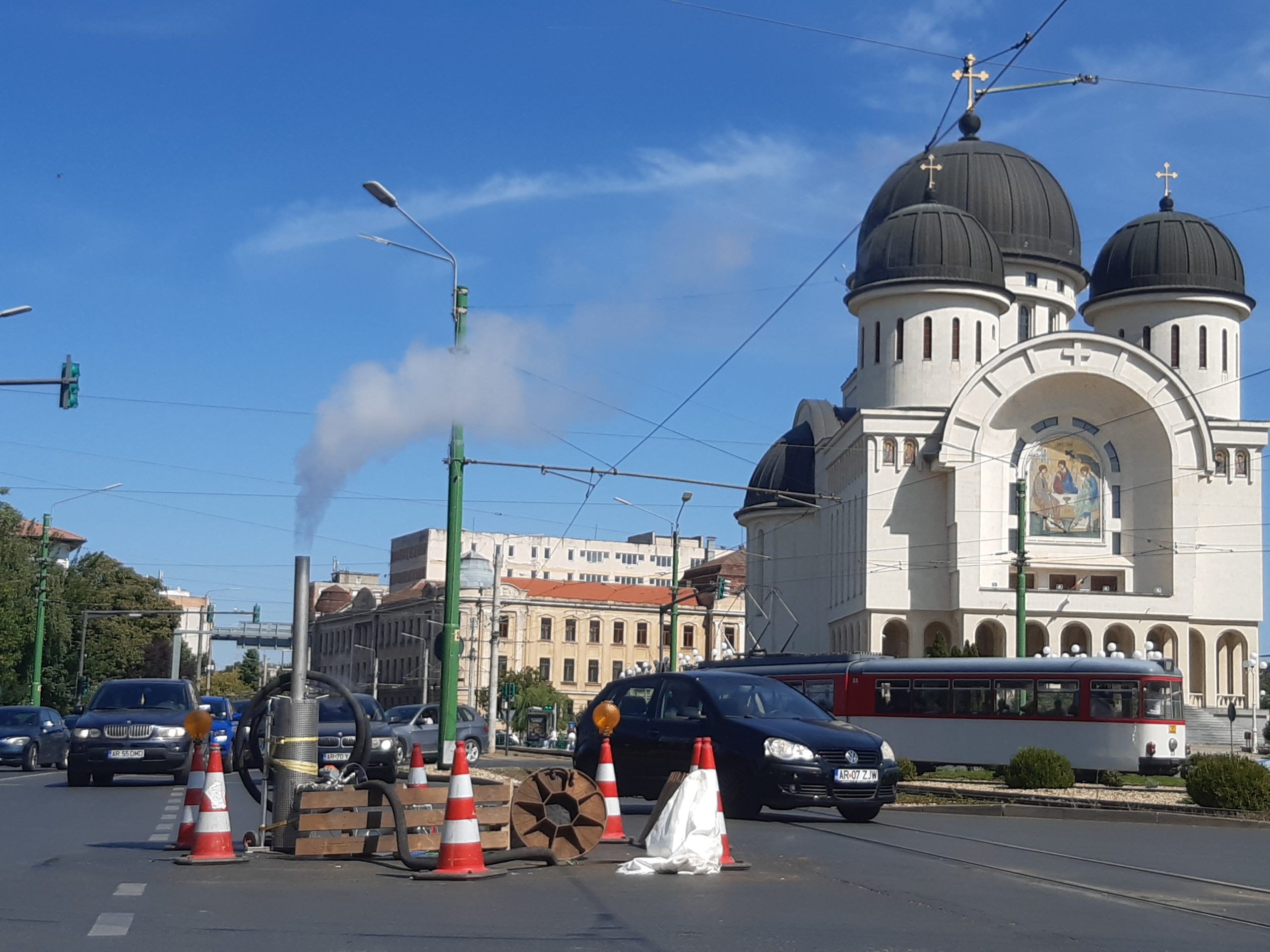 De la strada Traian Moşoiu spre Podgoria se execută lucrări de cămășuire conductă. Pe segmentul cuprins între strada Ioan Alexandru (fostă Ineului) şi strada Dimitrie Bolintineanu se fac spălări de conducte pentru pregătirea cămășuirii. La fel şi între străzile Ioan Alexandru şi Călimănești. De asemenea, la căminele de la strada Ioan Alexandru şi Călimănești se intervine pentru dezafectarea instalațiilor hidraulice vechi. „Gropile de poziție sunt necesare datorită lungimilor mari de conducte. De aici se efectuează lucrările de spălări conducte şi cămășuire” – precizează reprezentanţii Companiei de Apă Arad.
