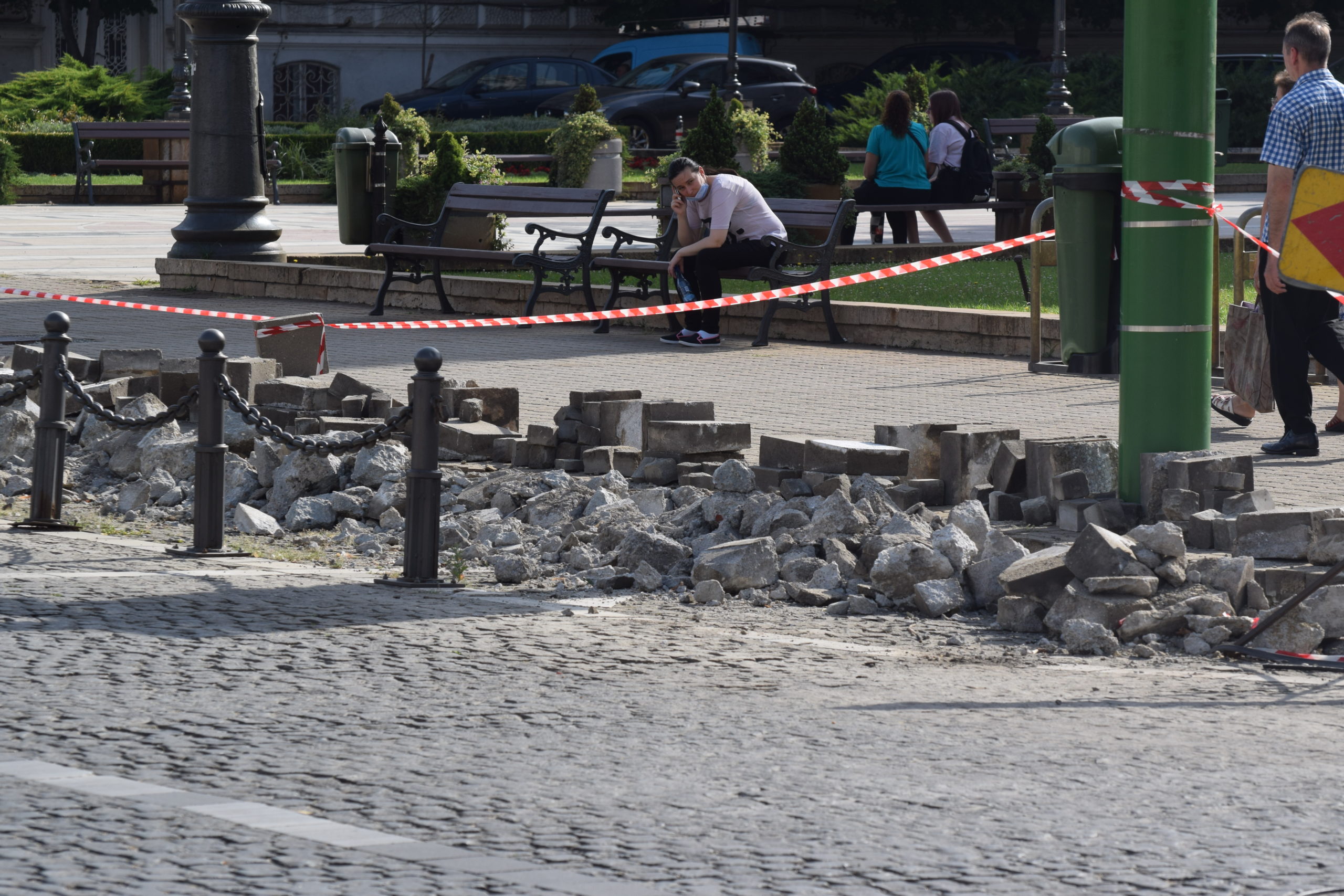Aglomerație mare, marți dimineață, în fața Palatului Administrativ din municipiul Arad. Câțiva muncitori scoteau piatra cubică și bordurile din fața Primăriei, iar un excavator încărca molozul într-un autocamion. Am solicitat reprezentanților Primăriei Municipiului Arad să ne spună ce se întâmplă, iar răspunsul acestora a sosit la câteva ore după solicitare: „Înlocuim bordurile, pentru că au fost sparte”.