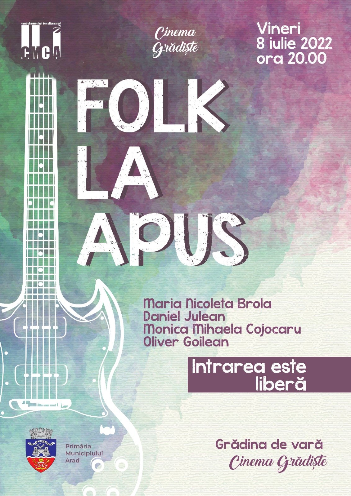 ARAD. Se diversifică oferta cultural-artistică la cinematograf. După proiecții de filme artistice, spectacolele de teatru de păpuși și concertele de muzică clasică, Primăria – prin Centrul Municipal de Cultură – propune acum un spectacol de muzică folk.
