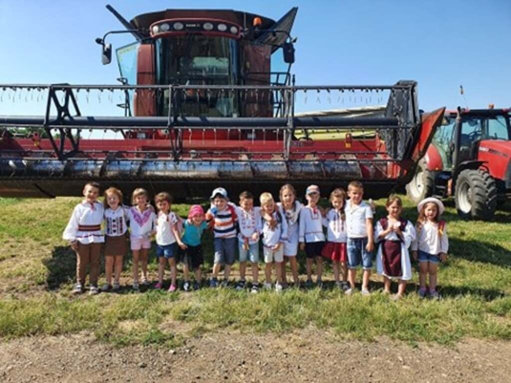 Îmbrăcați în porturi tradiționale, cei mici au pășit în lumea secerișului, au văzut ce înseamnă recoltarea grâului și unde se depozitează.Și de la tractoare, au trecut la animalele hrănite cu roadele holdelor. O mică excursie câmpenească, a făcut ca tradiția să nu se piardă și poate cel mai important, noțiunile învățate de copii pe parcursul anului școlar au fost acum aplicate. Natura, grădinăritul, ferma și creșterea animalelor, toate au devenit mult mai aproape de universul cunoașterii printr-o abordare practică, un altfel de lecție pe care cei mici o vor ține minte mult mai ușor decât cele din sălile de curs. În final, grădinarii au savurat un picnic tradițional și au povestit plini de entuziasm primele impresii culese printre spicele de grâu.
