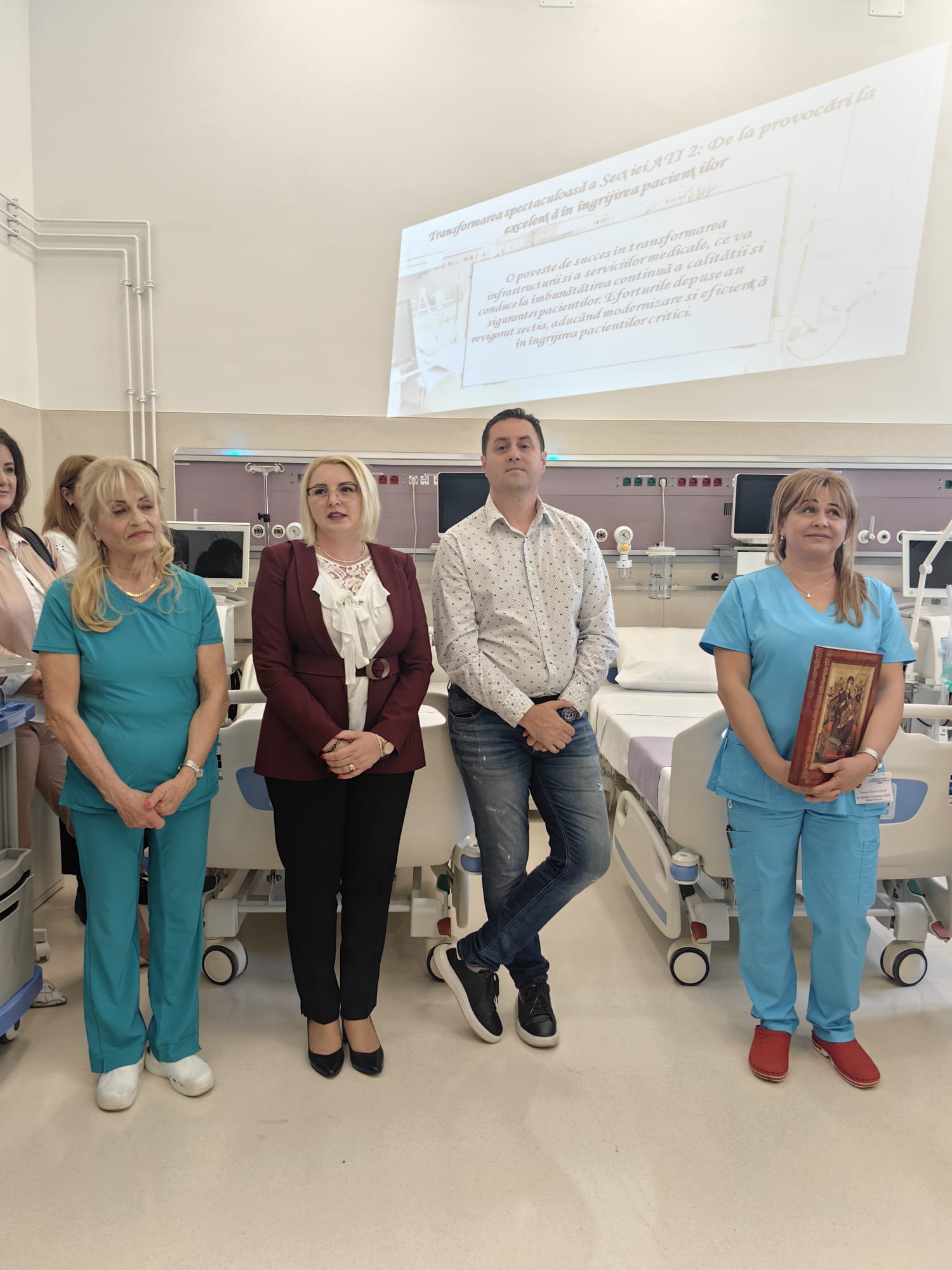 „Mă bucur că în ultimii doi ani am reușit să reabilităm și să modernizăm principalele trei secții de ATI. Din cauza neconformităților existente la începutul pandemiei, întrucât nu am avut montate console speciale pentru circuitele de fluide medicale și electricitate, iar ușile nu permiteau evacuarea pacienților cu patul, Secția Clinică Anestezie și Terapie Intensivă II a fost relocată, provizoriu, într-o altă clădire, iar aici am demarat lucrările necesare pentru reabilitare și modernizare. Ne bucurăm că astăzi avem încă o secție care asigură condiții adecvate îngrijirii și tratamentului pacienților care necesită terapie intensivă”, a precizat ec. Florina Ionescu, managerul SCJU Arad.