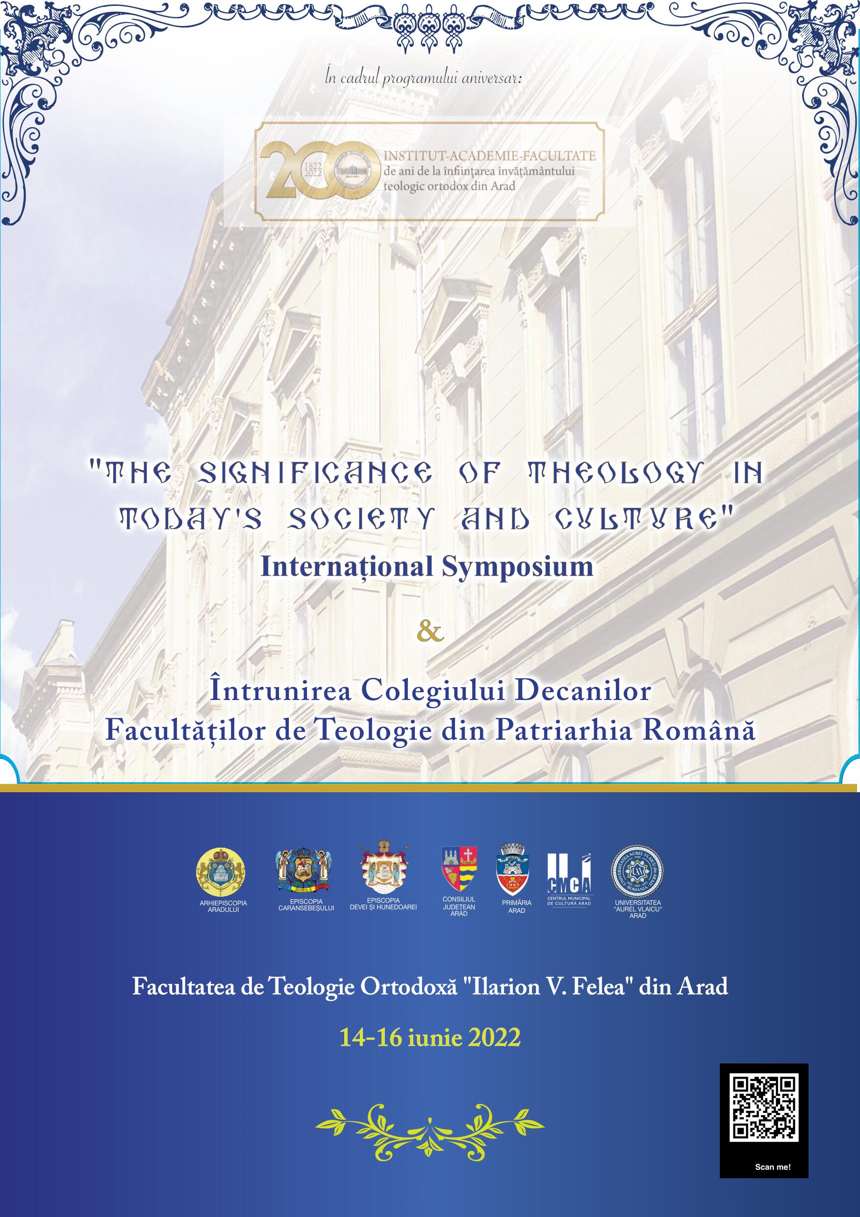Prima manifestare o reprezintă simpozionul internațional intitulat: “The Significance of Theology in Today’s Society and Culture” (Semnificațiile teologiei în societatea și cultura de azi). În cadrul acestuia, profesori de teologie din Germania, Austria, Grecia, Polonia, Statele Unite ale Americii, Canada, Rusia, Liban si de la Facultățile de Teologie din Romania, vor prezenta diverse perspective de raportare a Teologiei Bisericii la cultura și societatea contemporană.