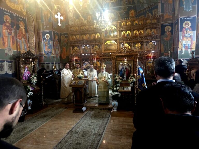 Sfânta Liturghie a fost oficiată de Înaltpreasfinţitul Părinte Timotei în biserica mănăstirii, înconjurat de un sobor de preoţi şi diaconi. În cuvântul de învăţătură Chiriarhul a vorbit despre „Cinstirea cetelor cerești” (pe baza citirilor scripturistice ale sărbătorii: Evr. 2; Lc. 10) prin imnografia bisericească în cadrul sfintelor slujbe. Fiecare om își are îngerul păzitor sub ale cărui aripi netrupești caută asemenea sfinților să devină înger în trup spre asemănarea cu Dumnezeu, după chipul Căruia a fost creat, a mai subliniat Înaltpreasfinția Sa.
