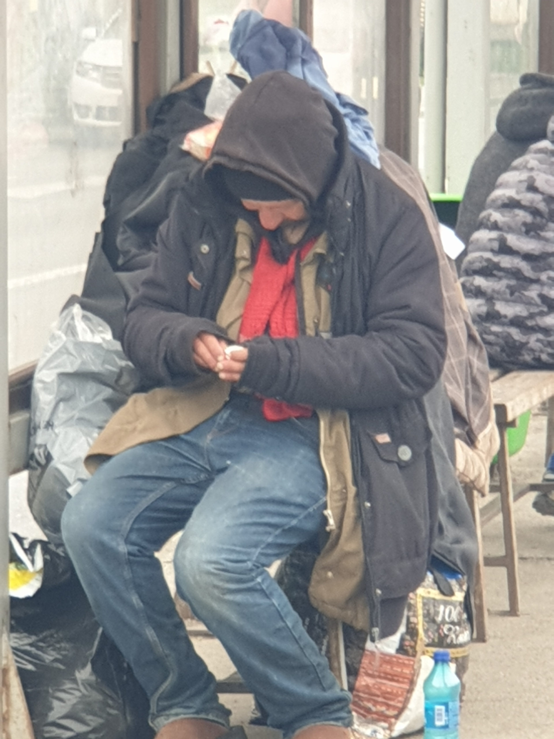ARAD. De trei zile, un om al străzii s-a instalat fără ca cineva să-l deranjeze în stația de tramvai de la Gara din Aradul Nou. Nimeni și nimic nu pare să îl perturbe pe bărbat să locuiască cu toate acareturile pe banca din stația de tramvai. Mizeria pe care o face se adună zi de zi, despre mirosuri nici nu mai vorbim, iar temperamentul violent vine să completeze un tablou care pare desprins din altă lume. O lume unde civilizația nu a mai ajuns.