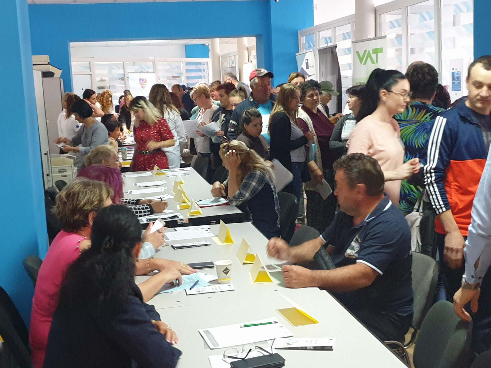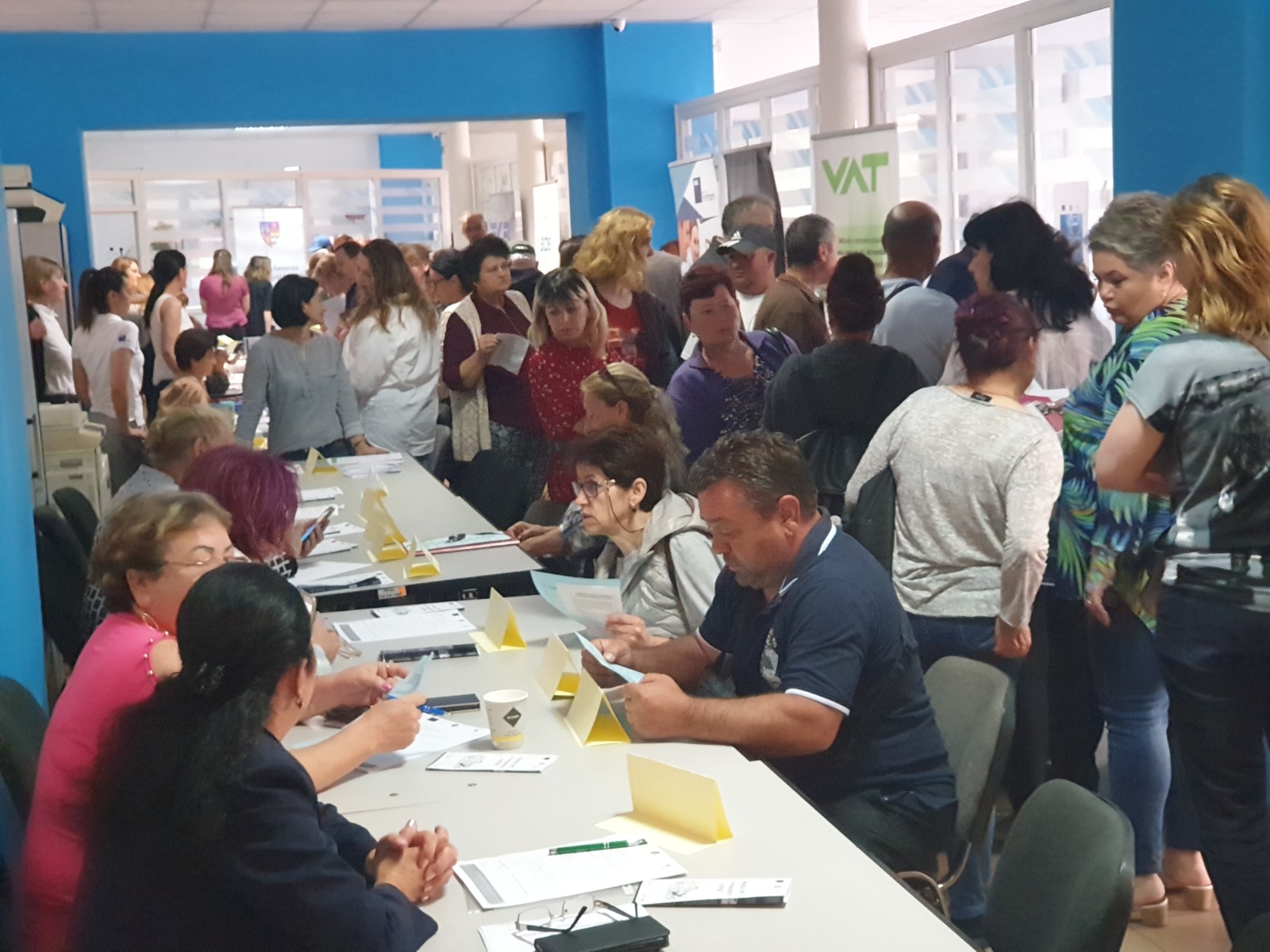 ARAD. Aflați în căutarea unui loc de muncă, sute de arădeni au venit vineri dimineață la sediul Agenției Județene pentru Ocuparea Forței de Muncă Arad pentru a vedea ce oferte sunt pe piața muncii și dacă ar putea să se angajeze. Unii au plecat de la Bursă chiar cu un job, iar peste 100 au fost selectați și urmează să fie intervievați în vederea angajării.