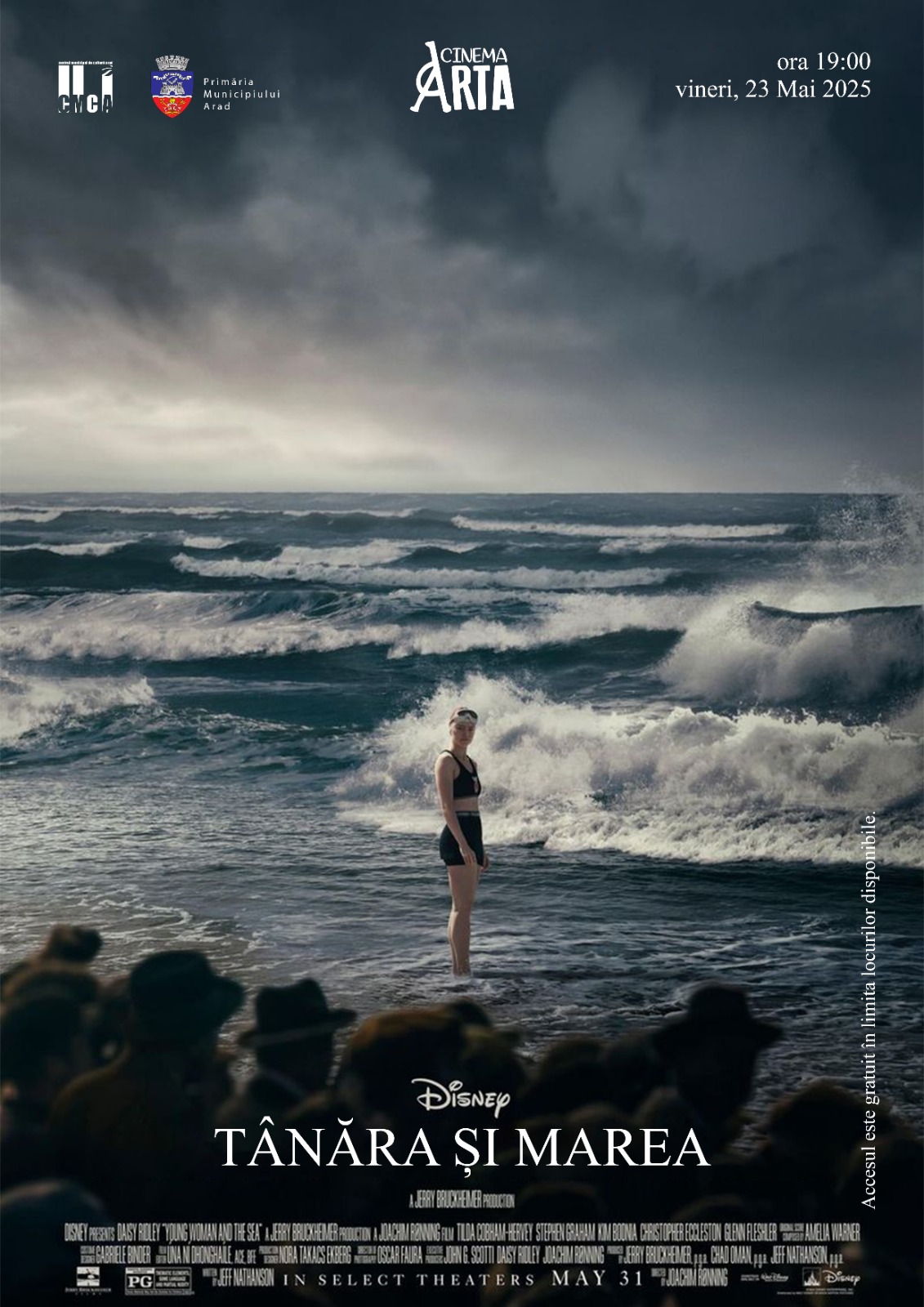 Filmul „Tânăra și marea”/„Young Woman and the sea” (regia Joachim Rønning), care prezintă povestea reală a primei femei care a traversat înot Canalul Mânecii, Trudy Ederle, va fi proiectat la Cinematograful „Arta” din Arad. Proiecția va avea loc vineri, 23 mai 2025, de la ora 19.00. „Accesul publicului va fi gratuit, în limita locurilor disponibile” – transmite Centrul Municipal de Cultură (CMC) Arad, organizator al proiecției.