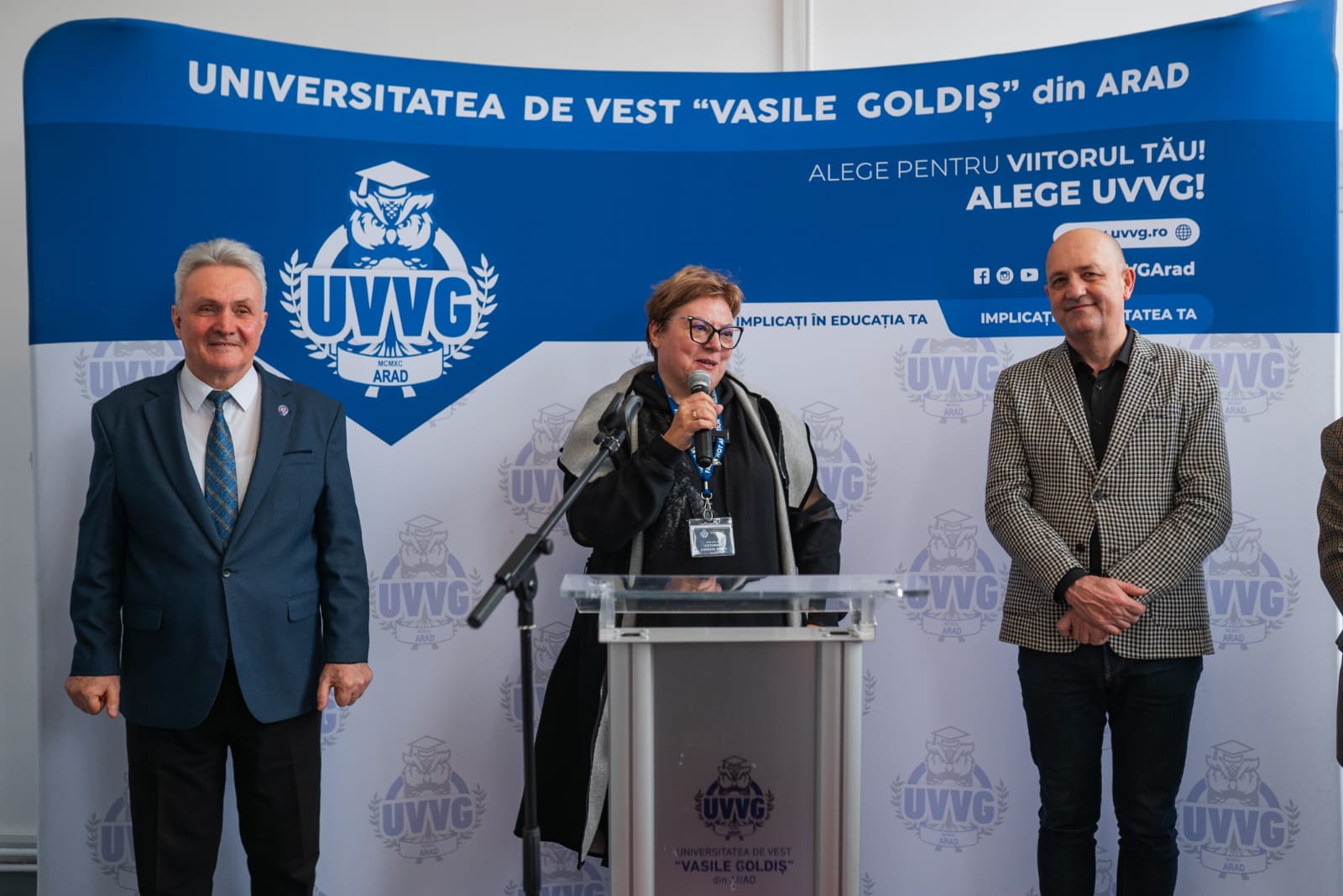 Gazdă și promotor al evenimentului, Rectorul Universității de Vest “Vasile Goldiș”, prof. univ. dr. Coralia Adina Cotoraci, și-a exprimat mulțumirea pentru prezența impresionantă, atât din partea antreprenorilor și a reprezentanților instituțiilor deconcentrate ale statului cât și a studenților interesați de eveniment: „Apreciez deschiderea pe care ați arătat-o fiecare dintre Dumneavoastră față de demersul nostru de a veni în sprijinul comunității, de a crea o reală direcție strategică a sistemului de învățământ către mediul antreprenorial si mediul medical, în mod special. Evenimentul se regăsește în lista activităților noastre ce au drept obiectiv principal continuitate în privința educației, a formării profesionale, a formării societății de mâine”.