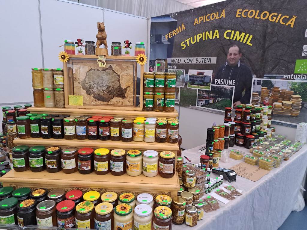Cu produse certificate ecologic a fost prezent și un apicultor din Buteni, Victor Semian. „Avem 200 de familii de albine și o gamă variată de produse, de la miere, la propolis sau tincturi. Tot ce produse este certificat ca produs ecologic”, a spus apicultorul arădean.
