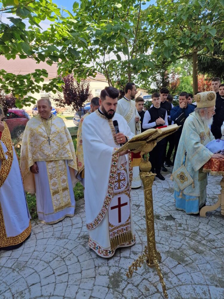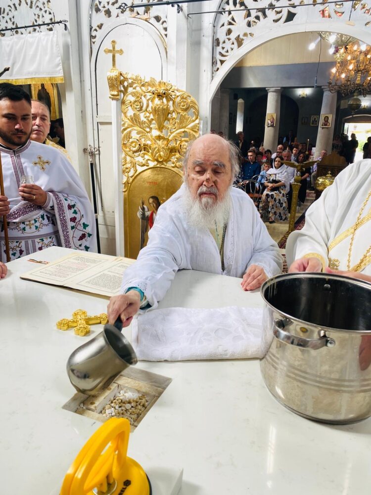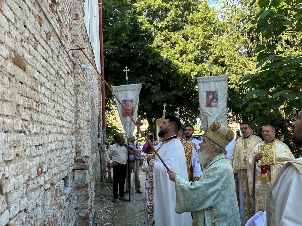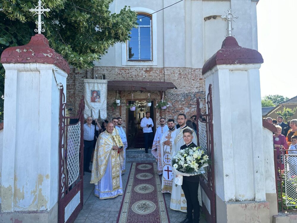 Înaltpreasfințitul Părinte Timotei a fost întâmpinat de către părintele protopop Flavius Petcuţ, care a rostit un cuvânt de bun venit în parohie, subliniind bucuria credincioșilor prezenți încă de la prima oră a dimineții pentru a-l aștepta pe ierarh. După întâmpinarea ierarhului, a urmat târnosirea bisericii și Sfânta Liturghie Arhierească.