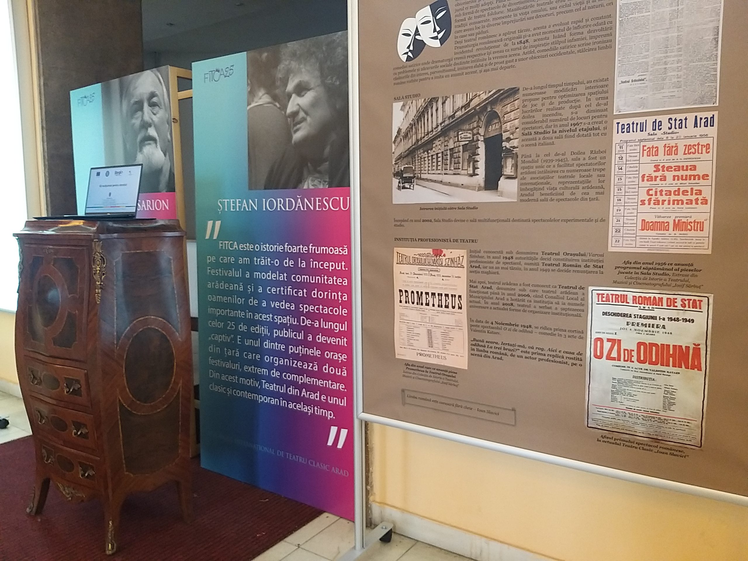 „Avem trei panouri care prezintă frumoasa poveste a clădirii teatrului atât din punct de vedere arhitectural, cât și al destinației pe care a avut-o aceasta. Avem primele afișe ale pieselor jucate aici”, a mai spus Lucia Giurgiu.