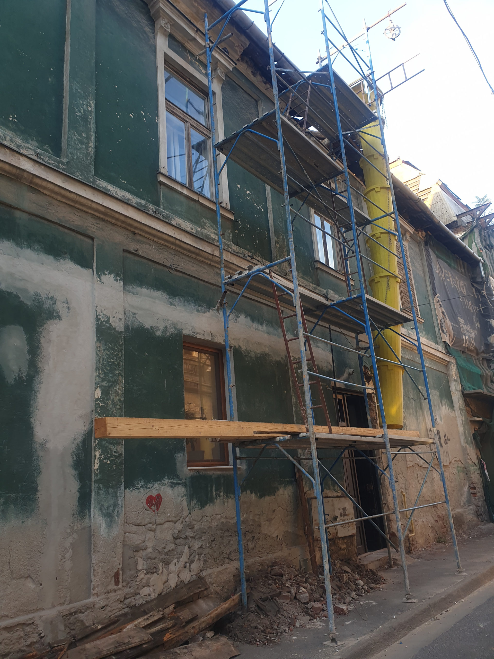 Aoleu doamne groasă cum lucrează acolo deci pe lângă tot cei vechi acolo au pus ceva pe lănci mai noi băi frate îți dai seama voi vă dați seama ce lucrare măsii acolo peste cei vechi mai dau ceva pe lănci ca să țină acele grinzi vechi băi lucrarea ma să-ți bagi joc pe niște zgârcită de oameni și dacă mergi în sinagogă aceea cică au reparată că vine ambasadorul Braziliei a fost într-adevăr da tot dezastru deci deci nimeni nimeni nu se sesizează în halul care să lucreze păi eu dacă făceam lucrarea cam tot atâtia bani luăm nu luam nici mai mult nici mai puțin cat să Coste lucrarea asta dacă tot o fost făcut așa de firma asta mă rog a ajuns la înțelegere niște scârțâit niște băi și pe lângă asta și să le ofere ce suferi plus că a fost dat în chirie gratis da așa da reparați am și eu nevoie de reparații în acestea
