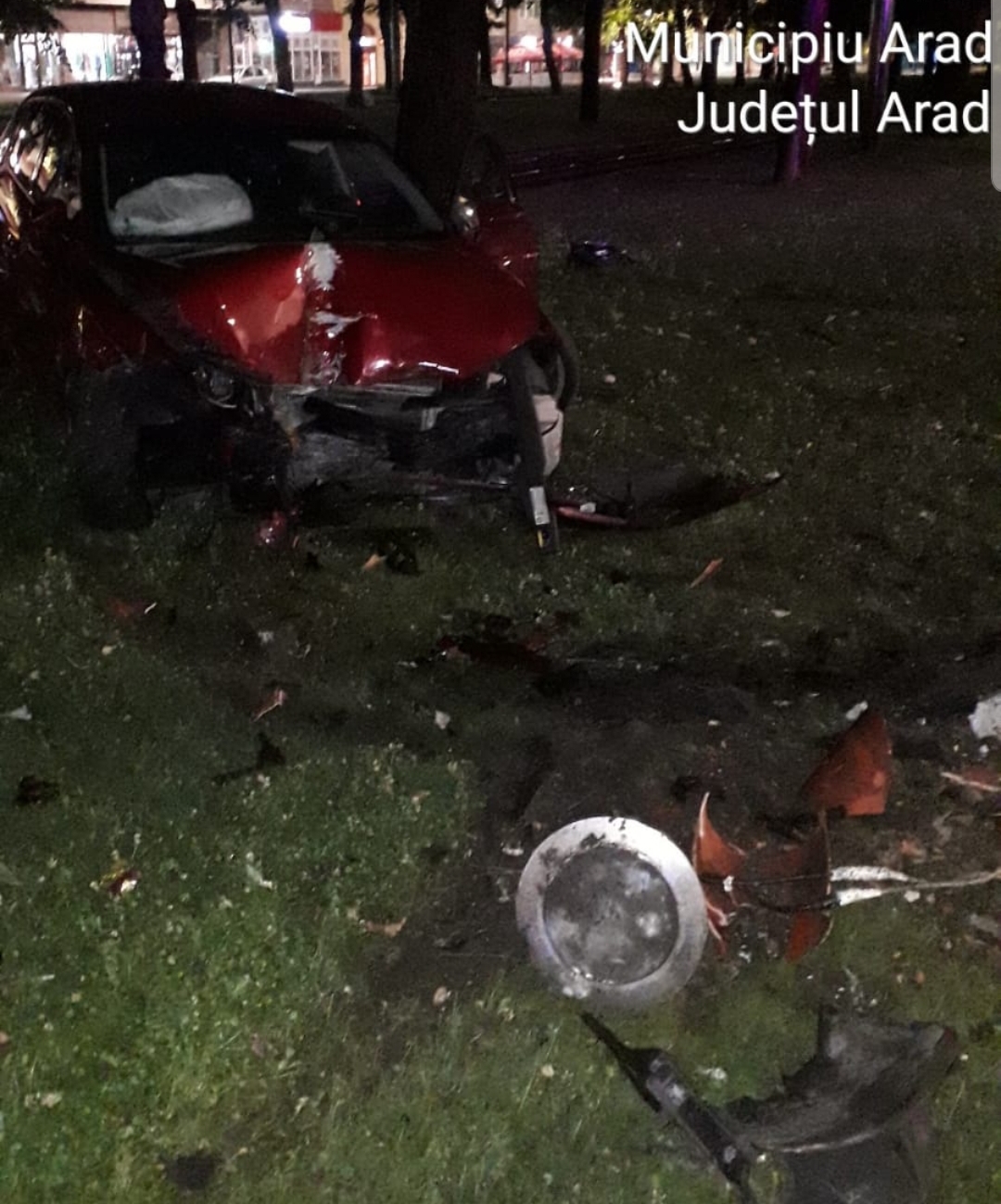 UPDATE. Potrivit Inspectoratului pentru Situaţii de Urgenţă Arad, accidentul a avut loc în noaptea de luni spre marţi (27 spre 28 mai), în jurul orei 2, pe Bulevardul Revoluţiei. Au fost implicate două autoturisme, unul dintre ele ajungând pe spaţiul verde. În urma evenimentului rutier, nu s-au înregistrat victime. La acel moment, ISU au intervenit doar pentru asigurarea măsurilor PSI. Nu au existat scurgeri de combustibil, ca primă măsură de siguranţă pompierii au deconectat bornele de la bateriile maşinilor.