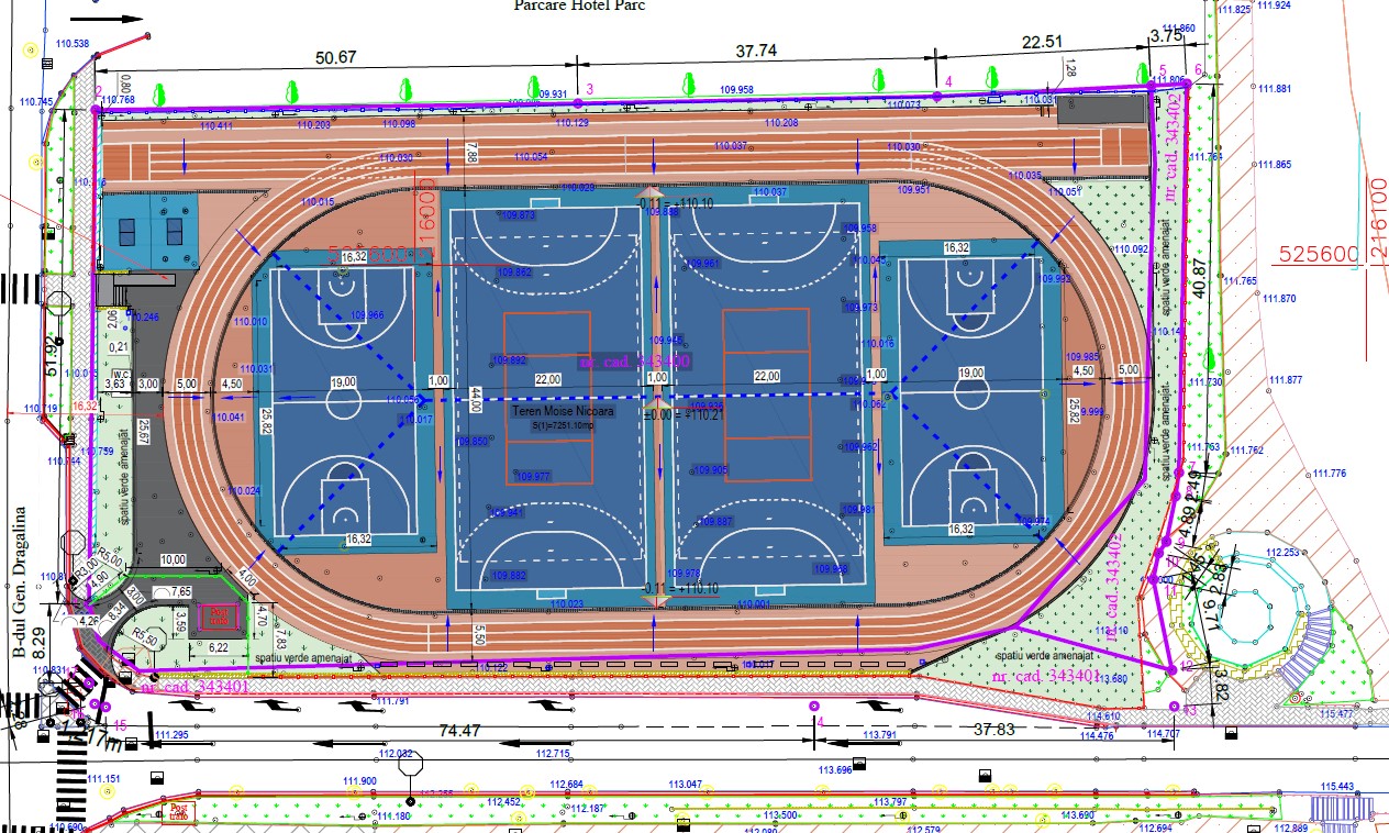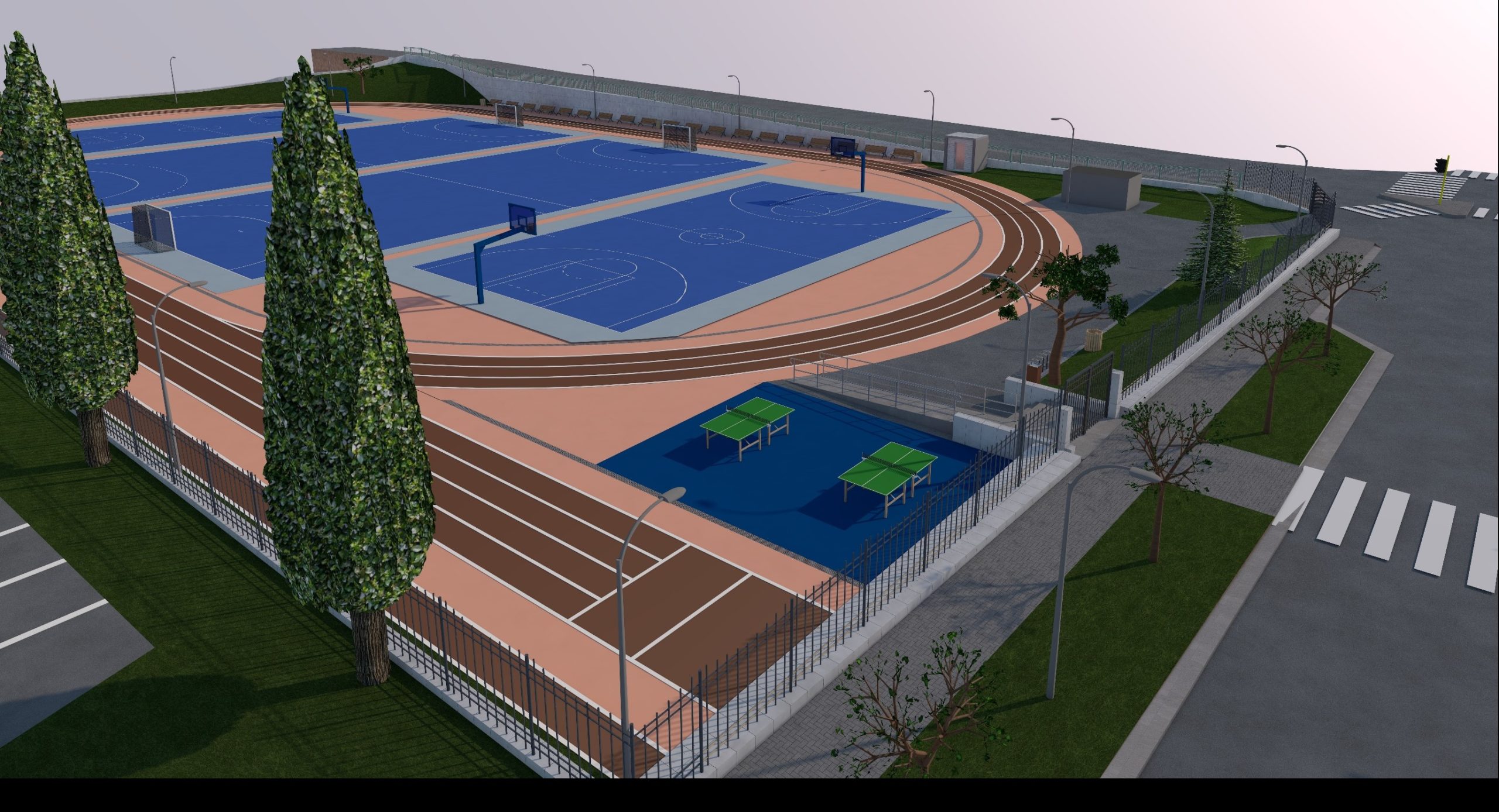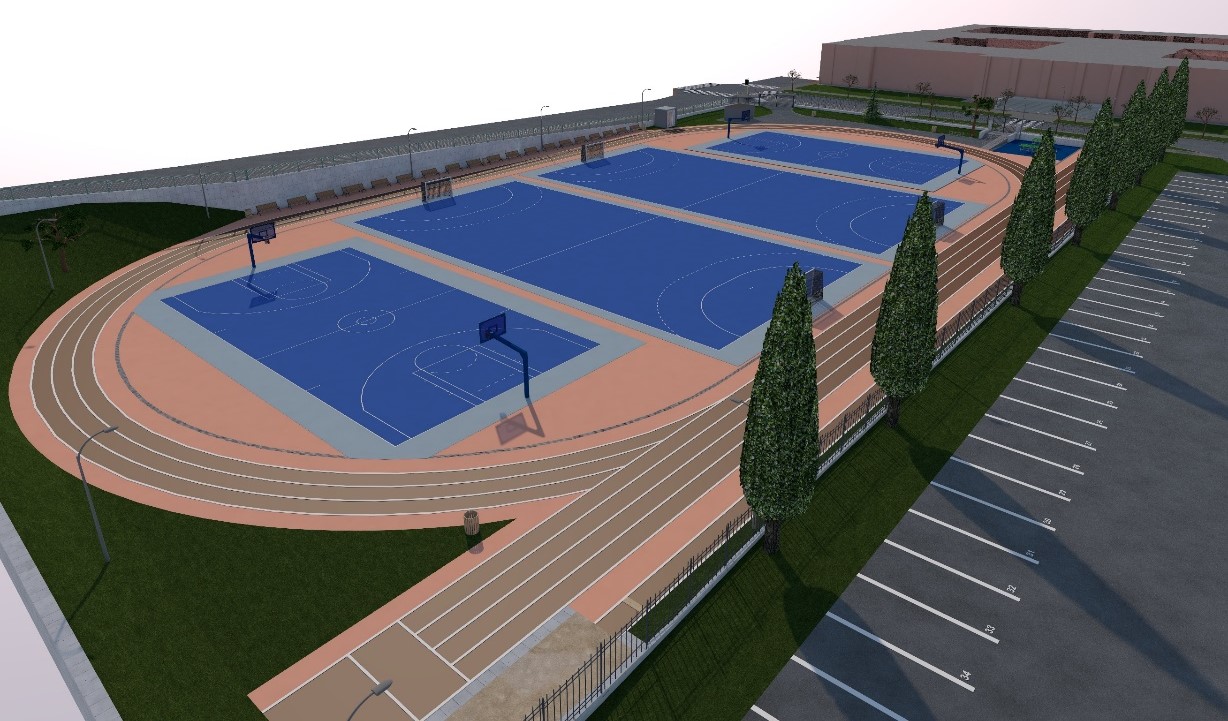 Practic, pe o suprafață de peste 7.000 mp se vor realiza două terenuri de baschet și alte două terenuri de handbal, unde se vor marca tot pe atâtea terenuri de volei. Pista de viteză va avea 4 benzi, 3 dintre ele suprapunându-se cu pista de alergare, în timp ce o bandă rămâne independentă. De asemenea, se are în vedere amenajarea unei piste și a unei gropi cu nisip în suprafață de 25 de metri pătraţi, pentru săritura în lungime. Suprafața de joc a pistei va fi realizată din tartan. Va fi amenajată şi o zonă destinată iubitorilor tenisului de masă.